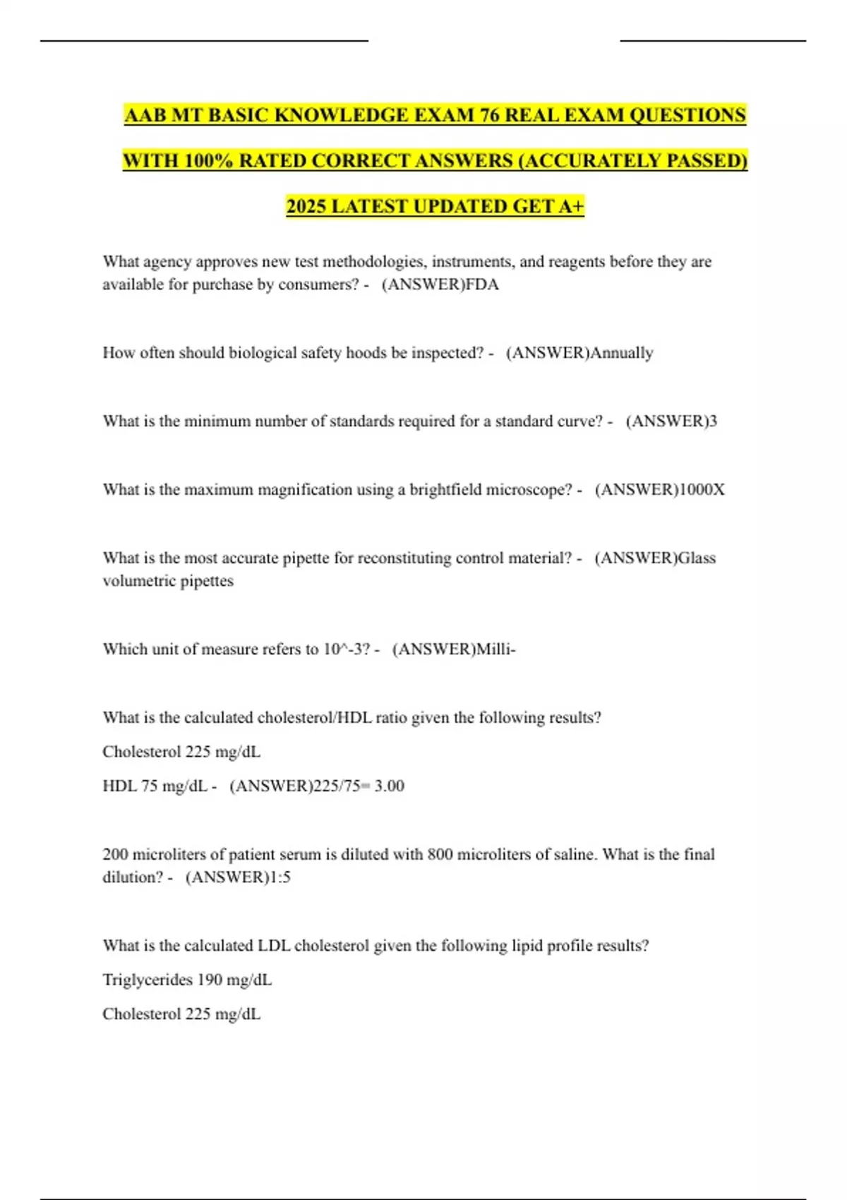 AAB MT BASIC KNOWLEDGE EXAM 76 REAL EXAM QUESTIONS