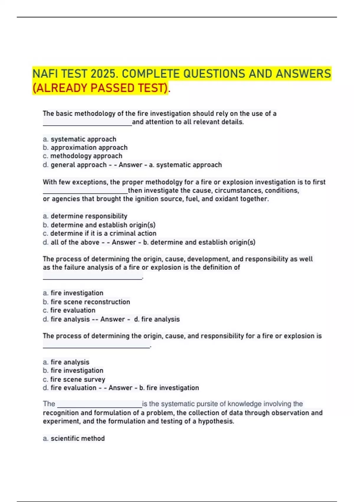With few exceptions, the proper methodolgy for a fire or explosion investigation is to first