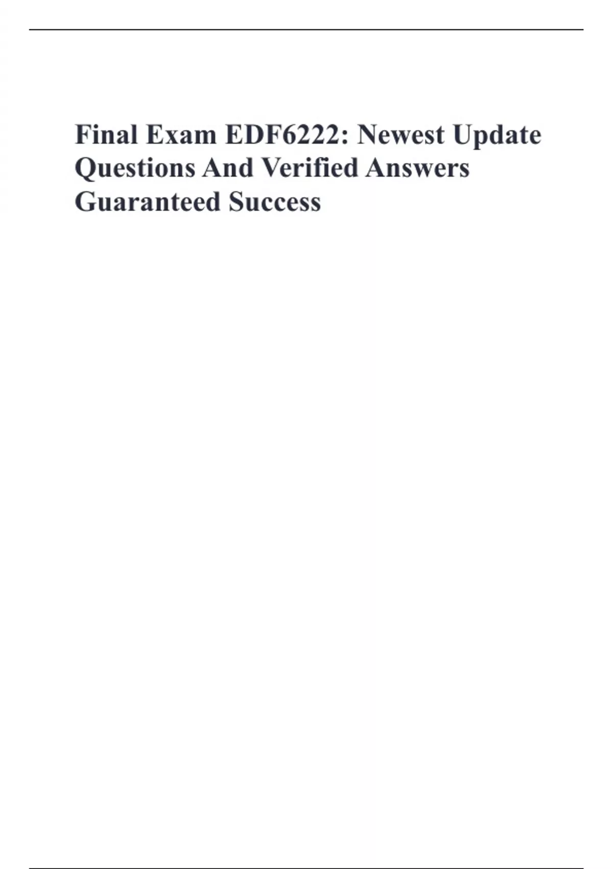 Final Exam EDF6222: Newest Update Questions And Verified Answers Guaranteed Success