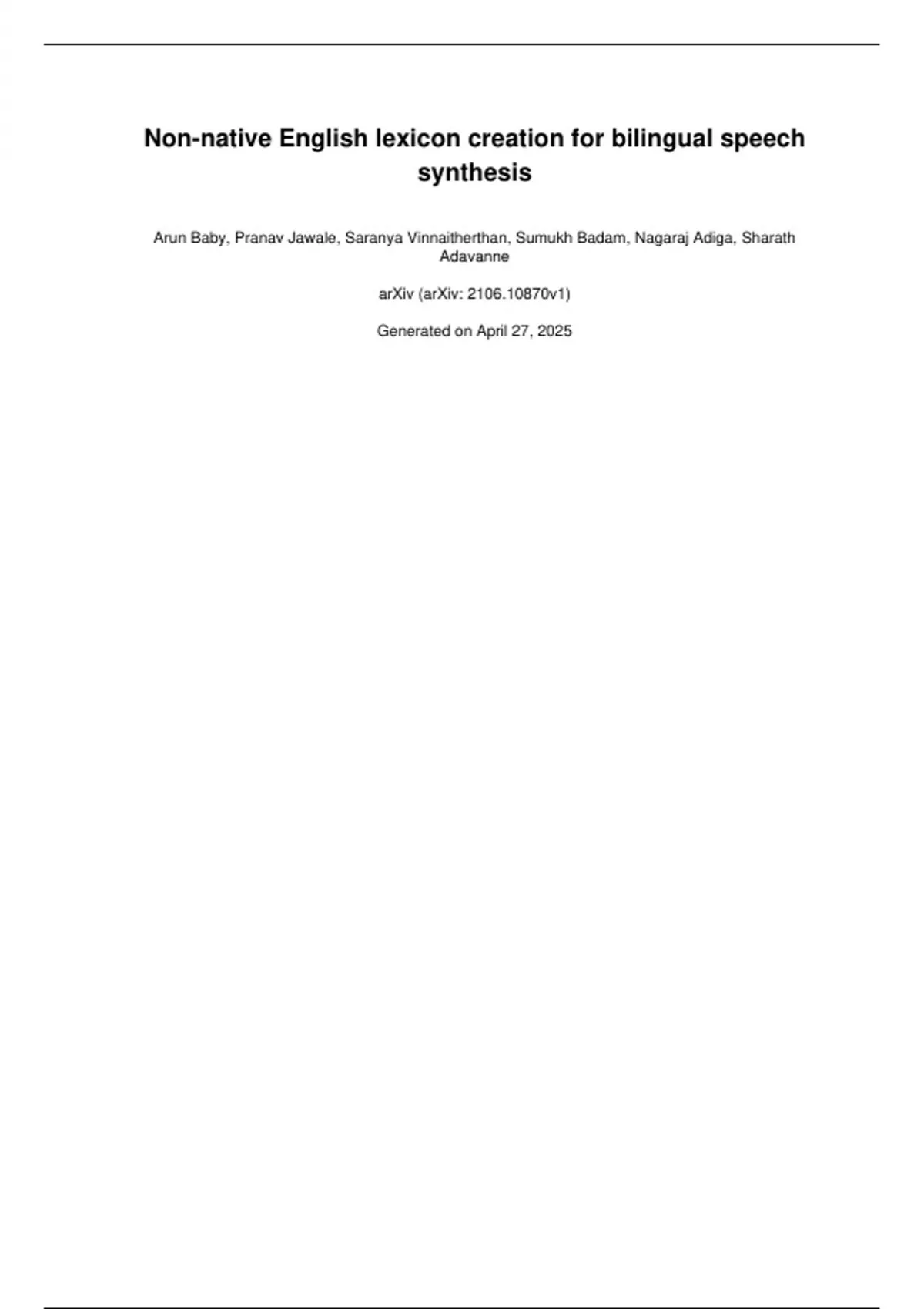 Non-native English lexicon creation for bilingual speech synthesis Arun Baby, Pranav Jawale, Saranya
