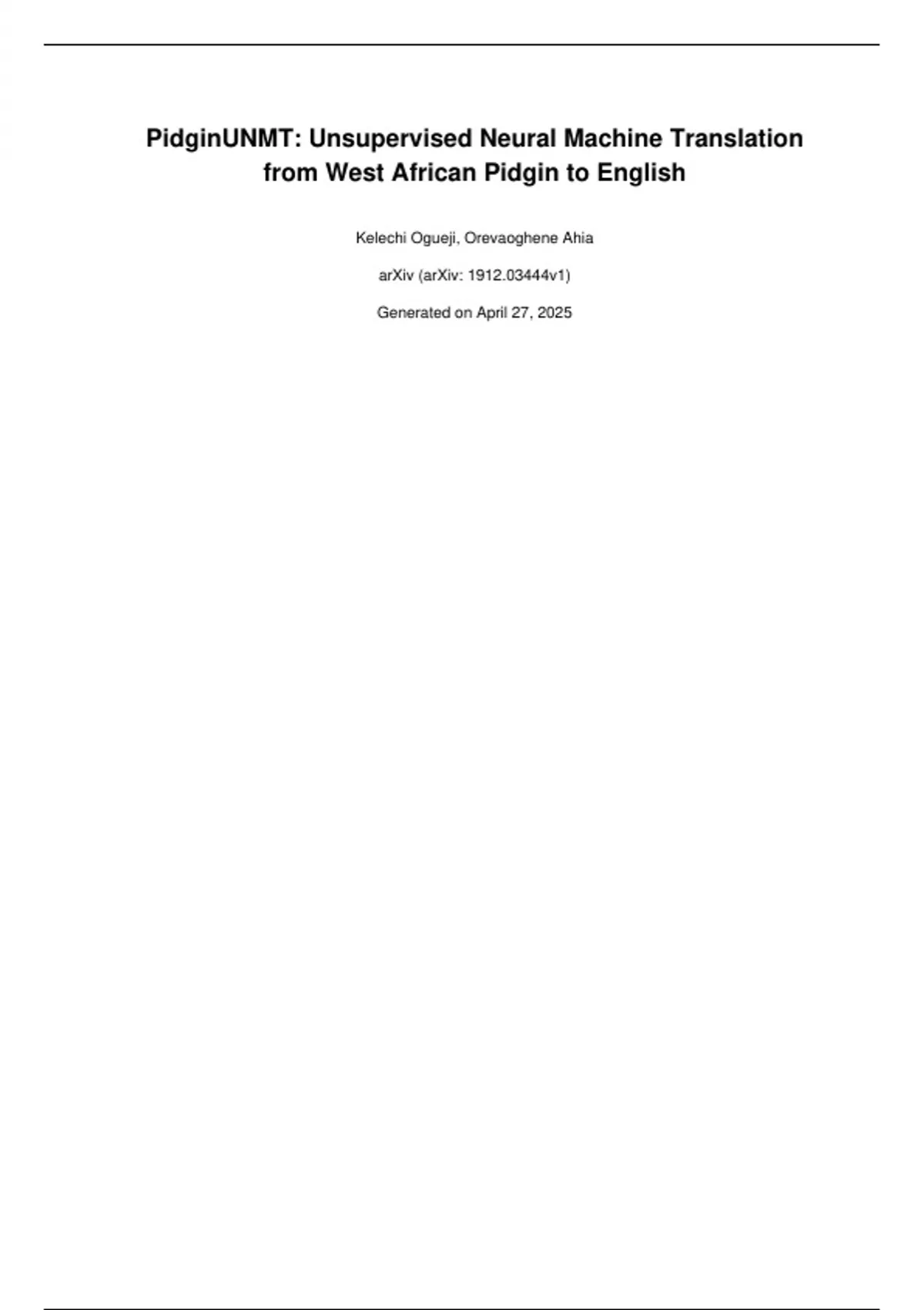 arXiv:1912.03444v1 [cs.CL] 7 Dec 2019PidginUNMT: Unsupervised Neural Machine Translation from