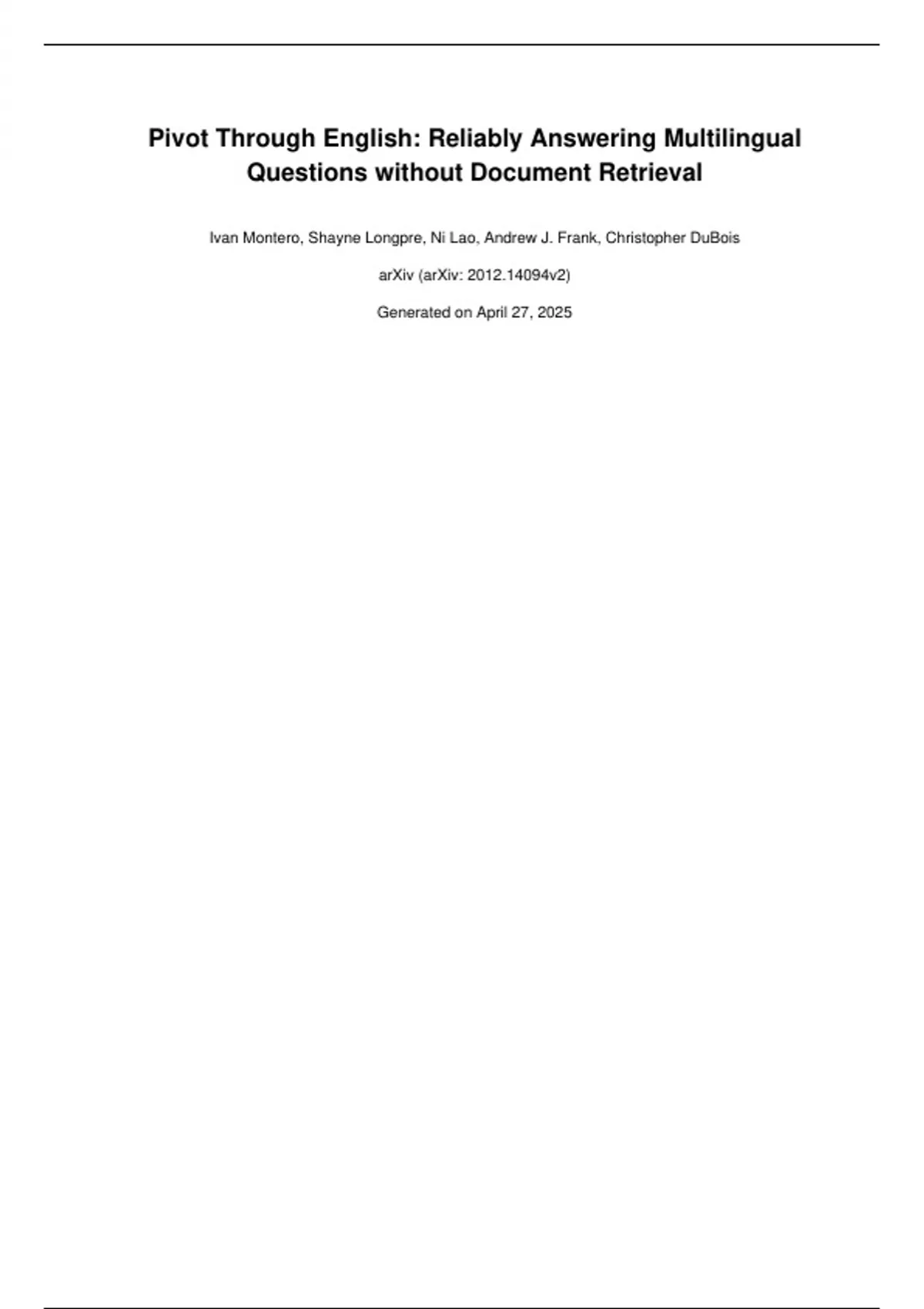 Ivan Montero, Shayne Longpre, Ni Lao, Andrew J. Frank, Christopher DuBois