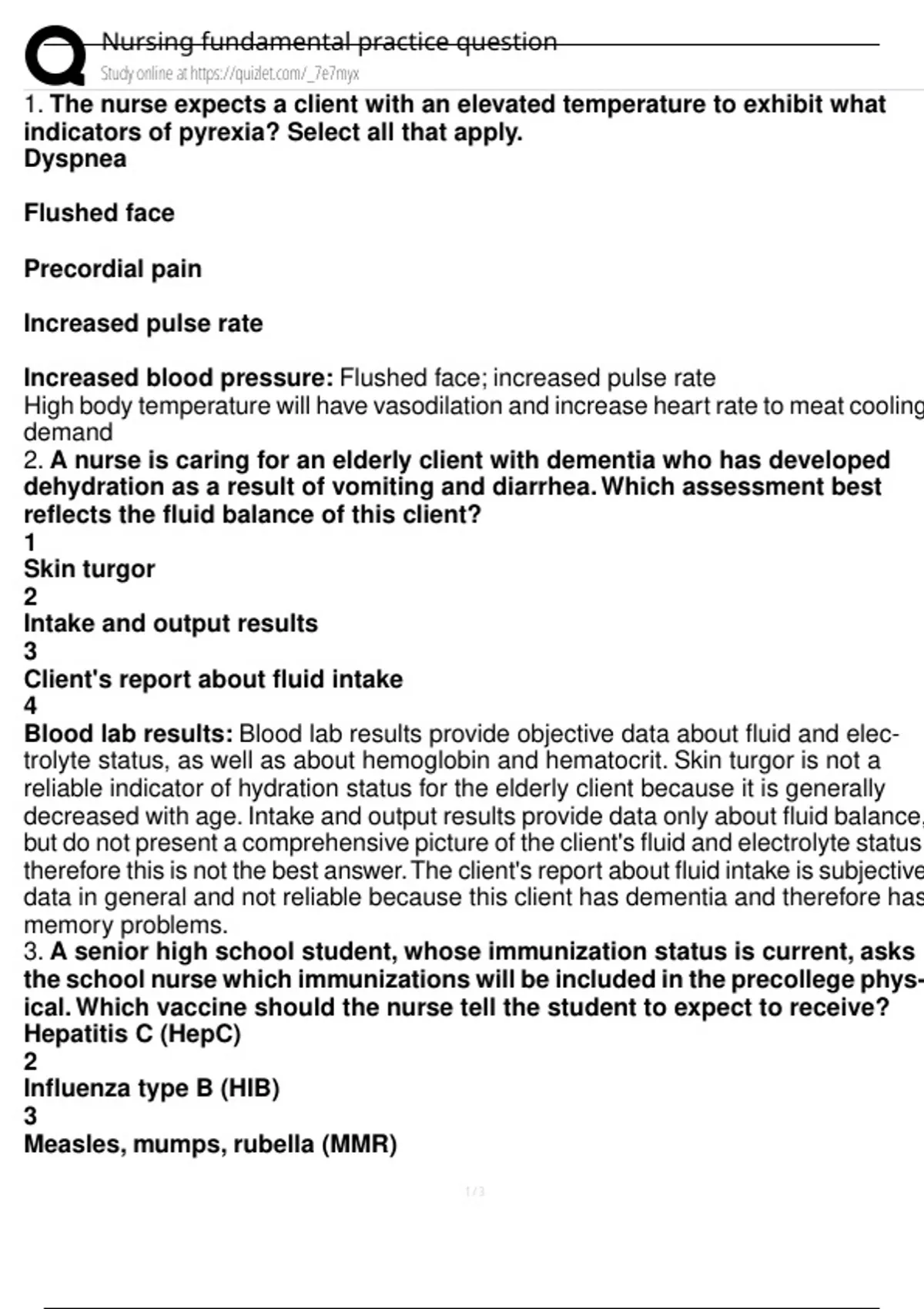 1. The nurse expects a client with an elevated temperature to exhibit what