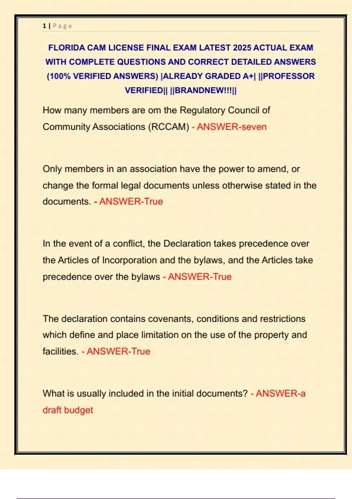 FLORIDA CAM LICENSE FINAL EXAM LATEST 2025 ACTUAL EXAM WITH COMPLETE QUESTIONS AND CORRECT DETAILED ANSWERS (100% VERIFIED ANSWERS) |ALREADY GRADED A+| ||PROFESSOR VERIFIED|| ||BRANDNEW!!!||