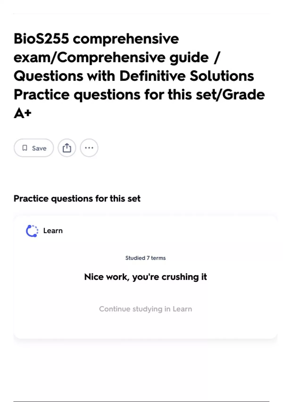 Continue studying in Learn