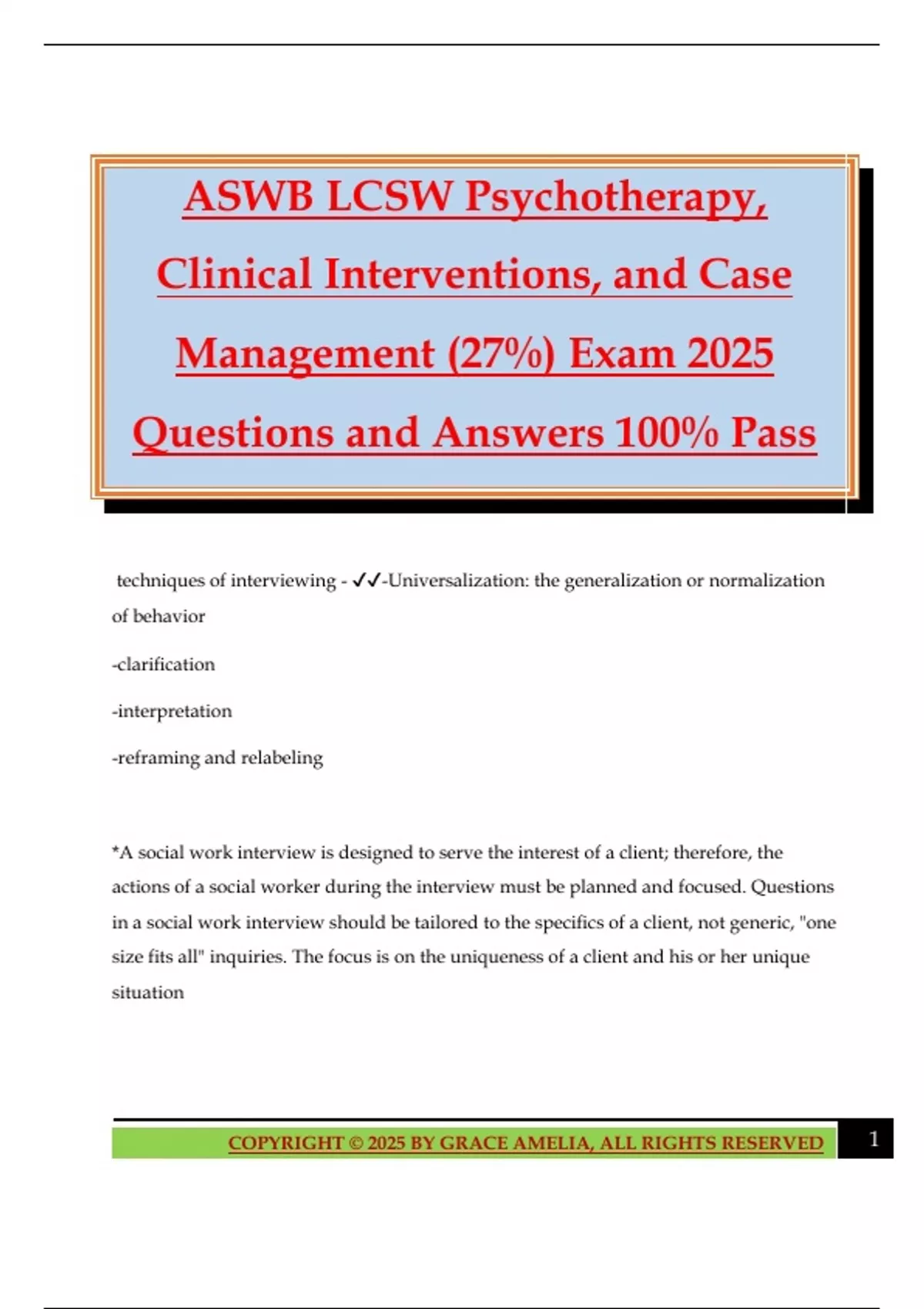 in a social work interview should be tailored to the specifics of a client, not generic, "one