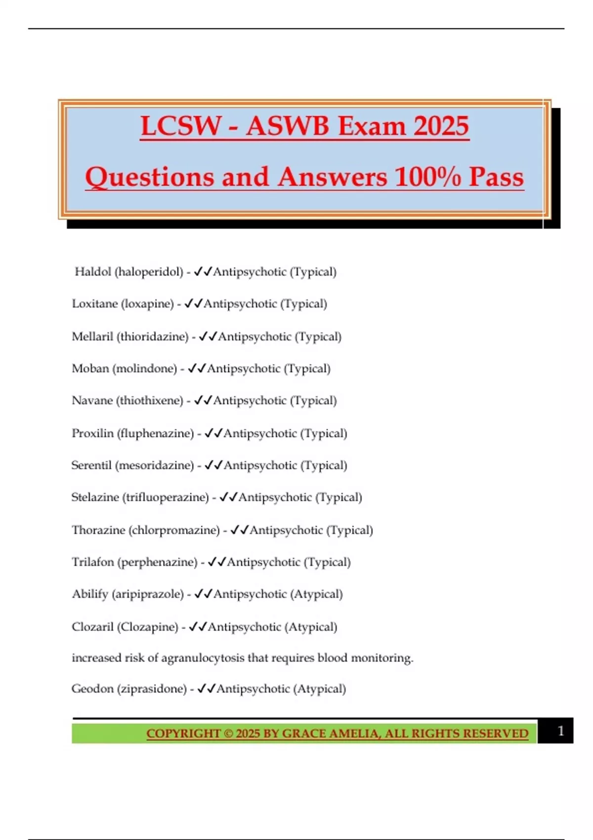 Clozaril (Clozapine) - ✔✔Antipsychotic (Atypical)