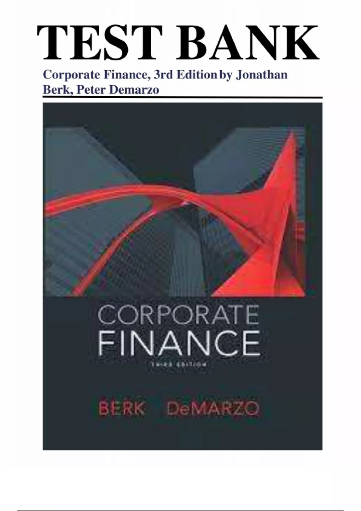 Test Bank for Corporate Finance, 3rd Edition by Jonathan Berk and Peter DeMarzo, All chapters