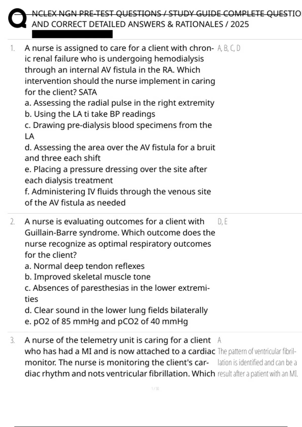 , NCLEX NGN PRE-TEST QUESTIONS / STUDY GUIDE COMPLETE QUESTION