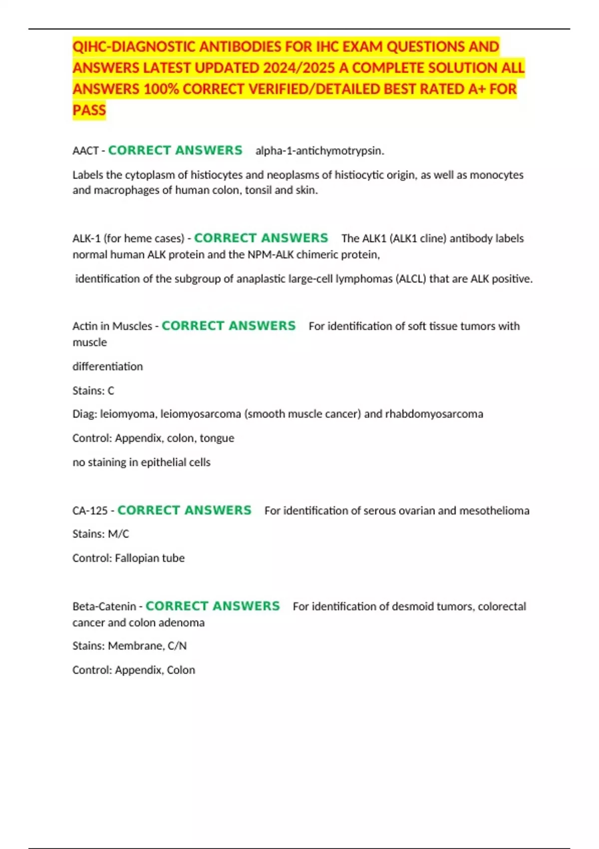 , QIHC-DIAGNOSTIC ANTIBODIES FOR IHC EXAM QUESTIONS AND