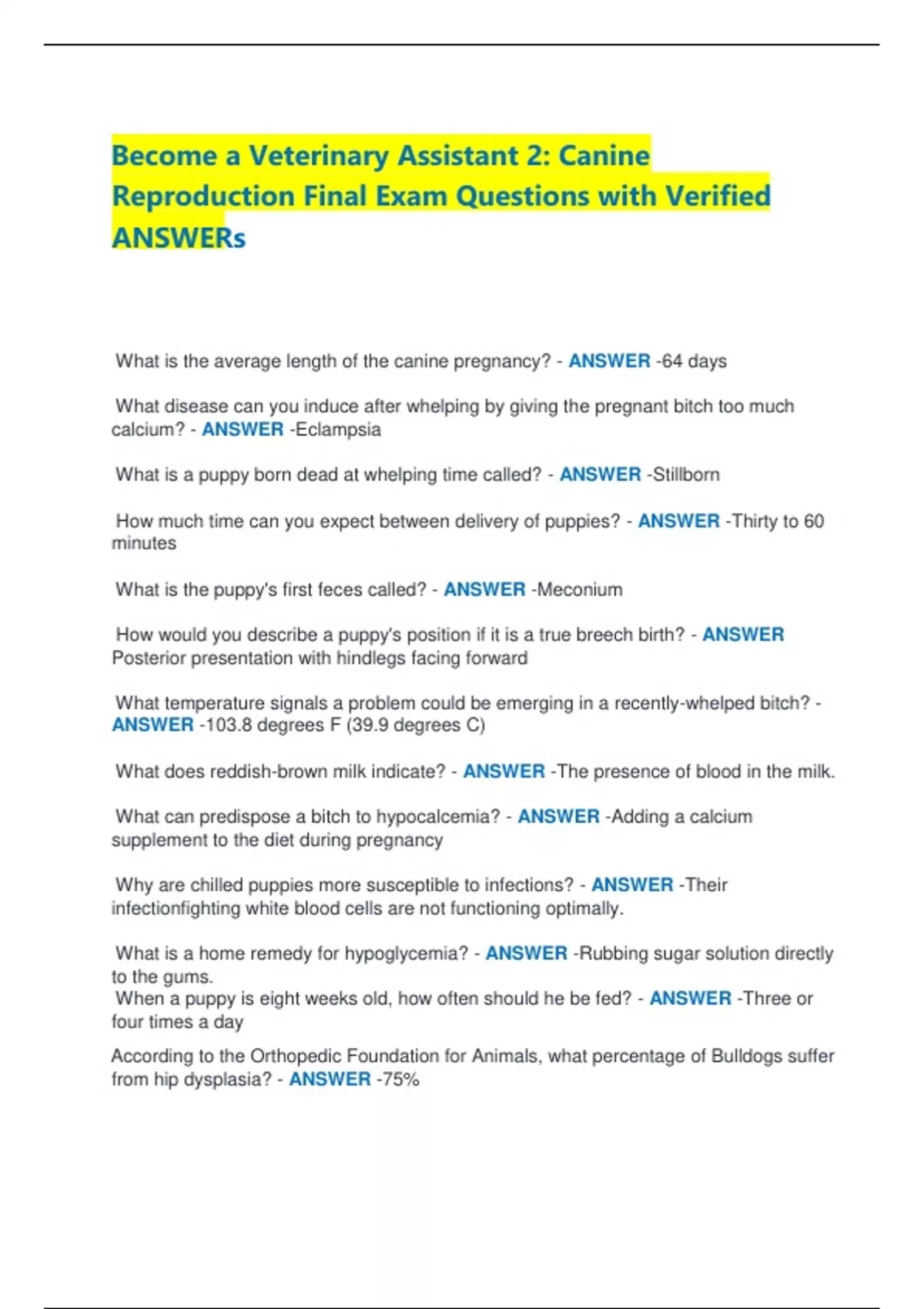 Become a Veterinary Assistant 2: Canine Reproduction Final Exam Questions with Verified ANSWERs
