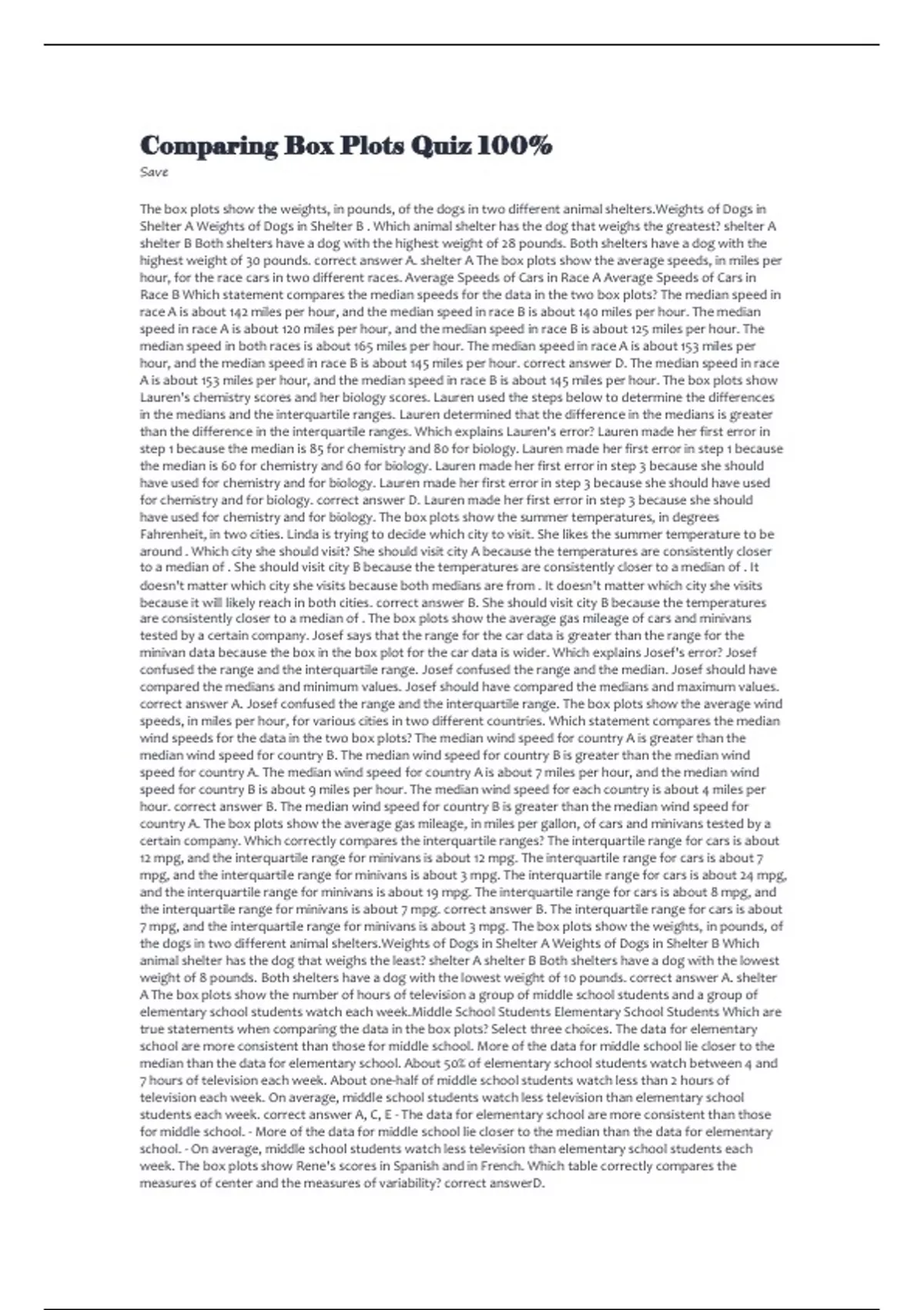 highest weight of 30 pounds. correct answer A. shelter A The box plots show the average speeds, in miles per