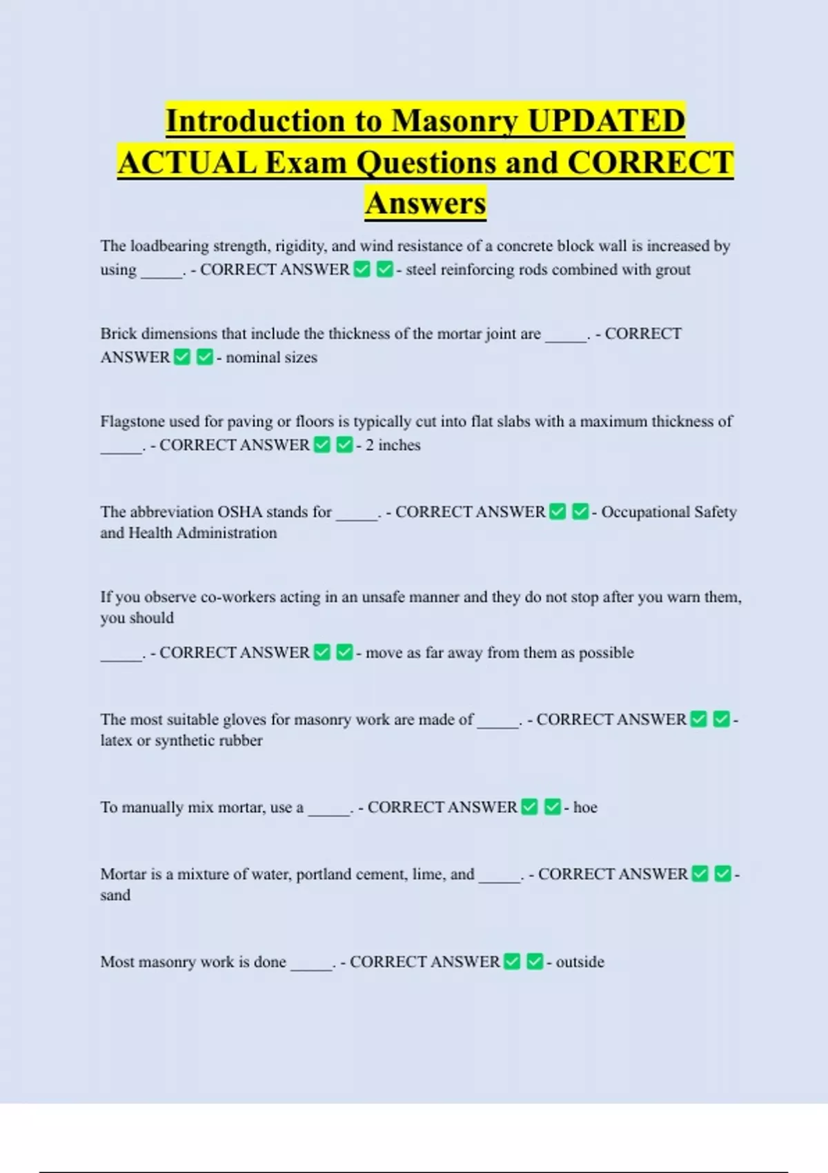ACTUAL Exam Questions and CORRECT