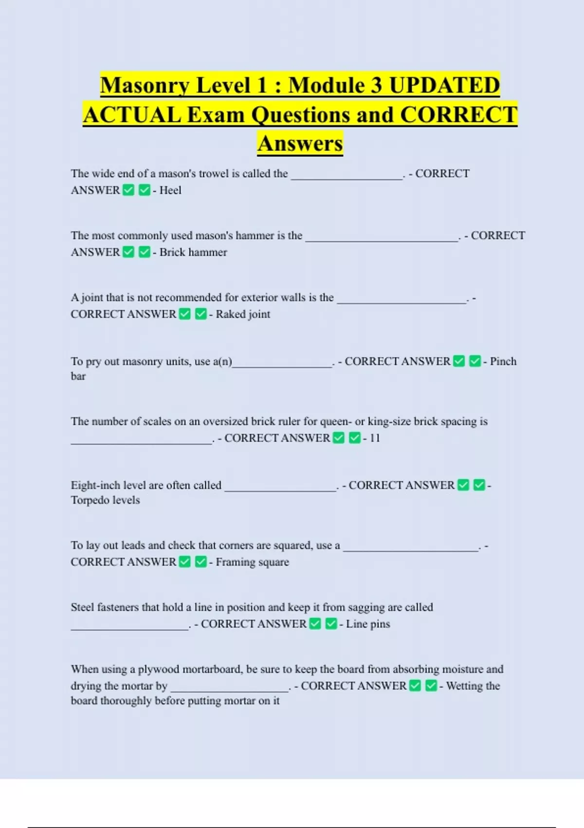 To pry out masonry units, use a(n)_________________. - CORRECT ANSWER - Pinch
