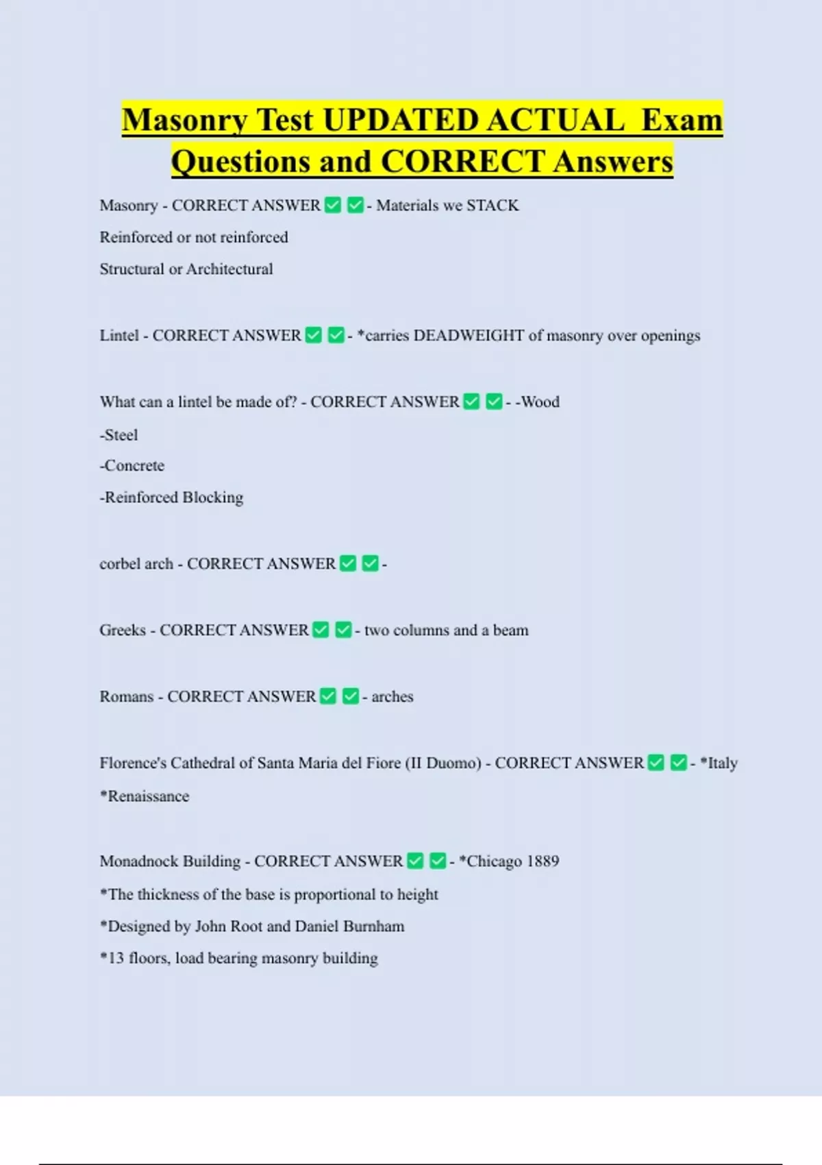 Masonry - CORRECT ANSWER - Materials we STACK