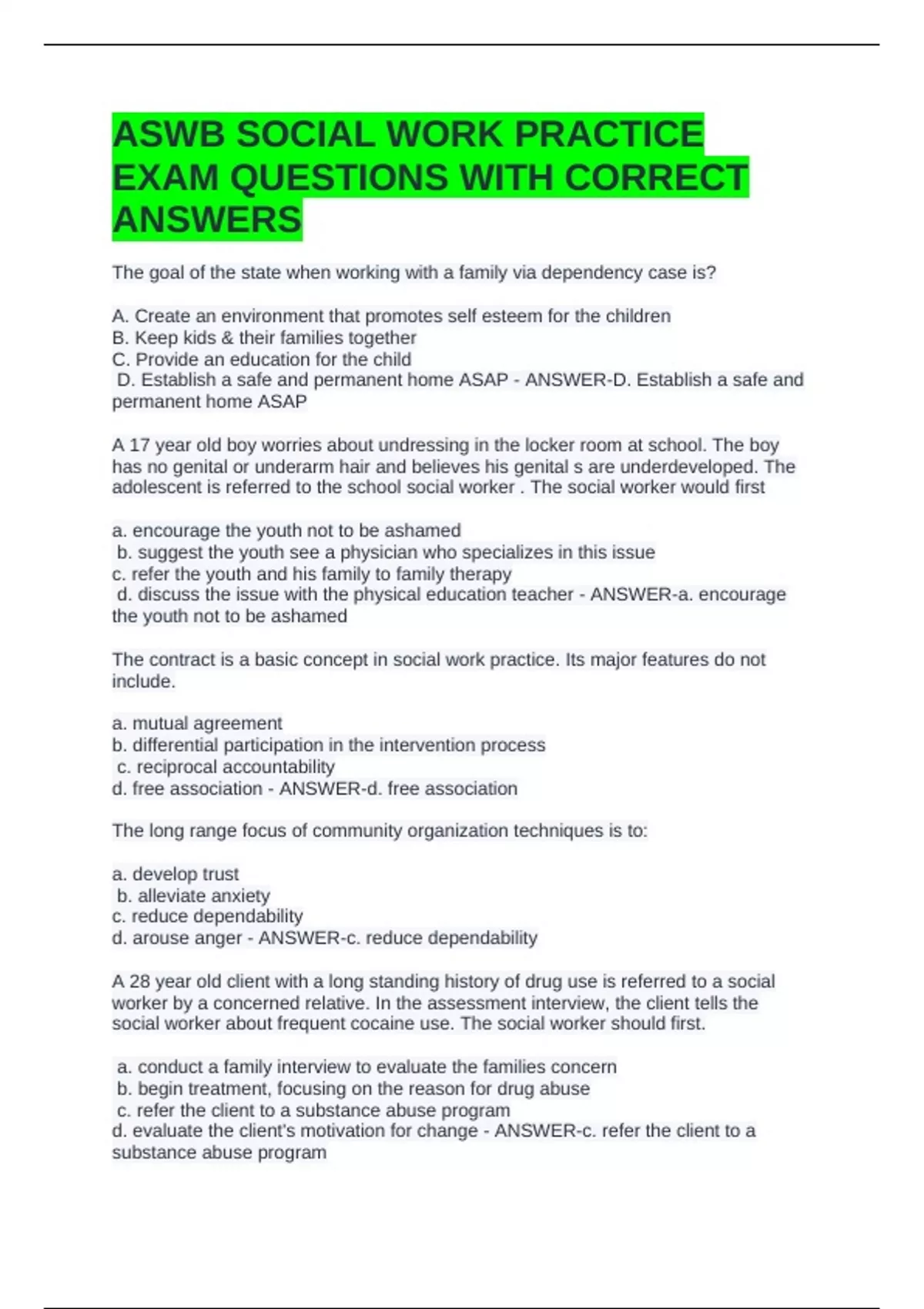 ASWB SOCIAL WORK PRACTICE