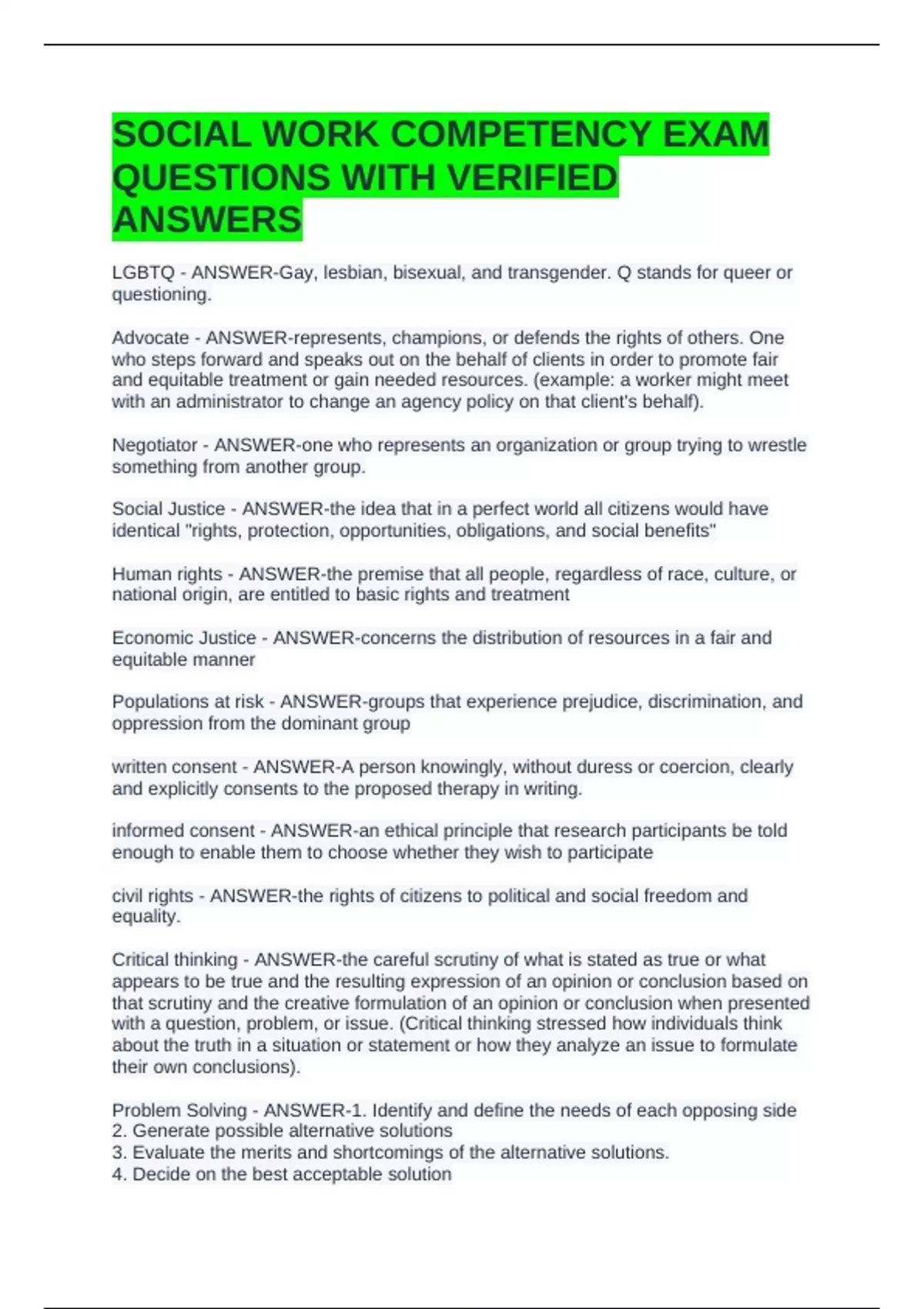 SOCIAL WORK COMPETENCY EXAM
