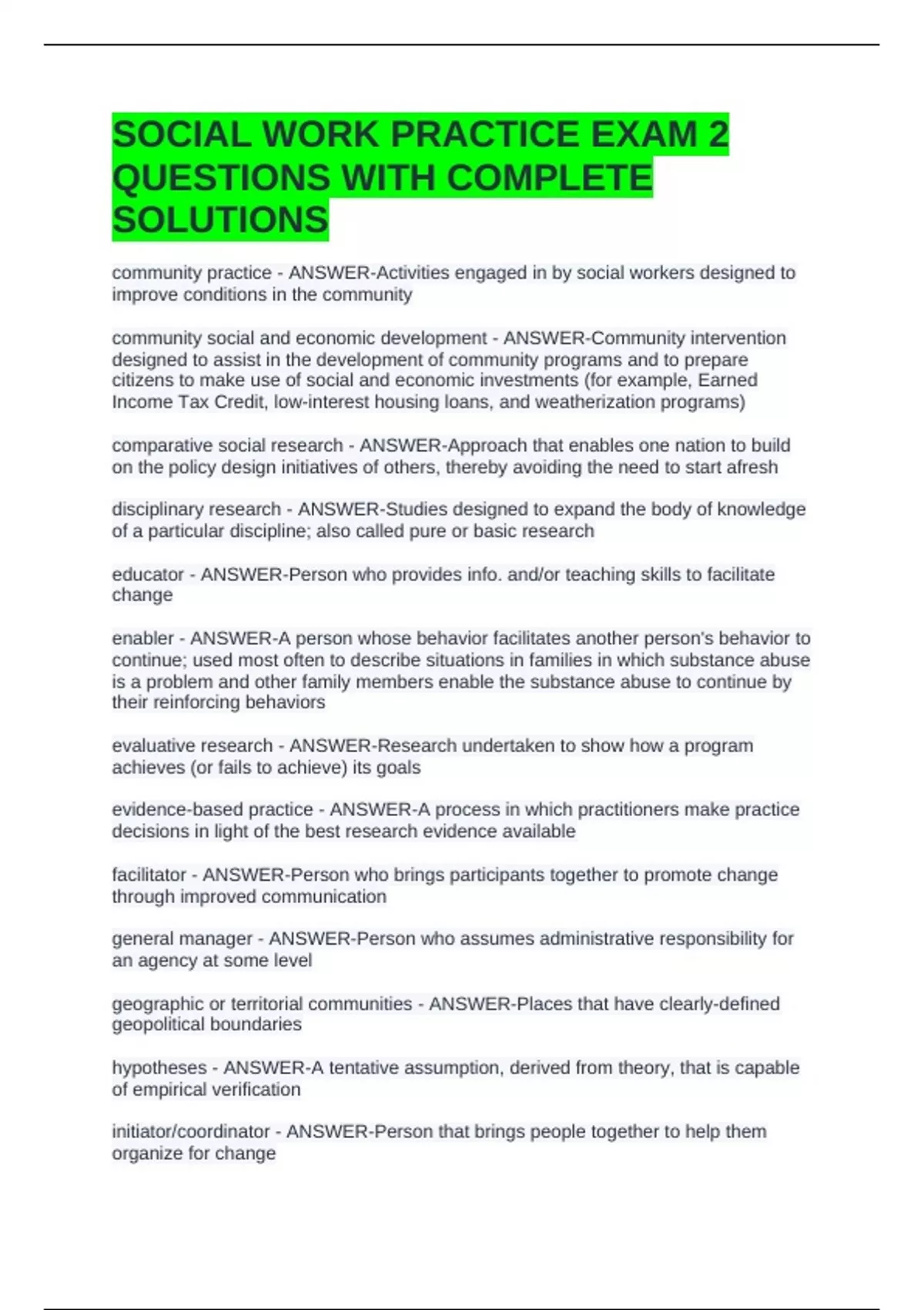 SOCIAL WORK PRACTICE EXAM 2 QUESTIONS WITH COMPLETE SOLUTIONS