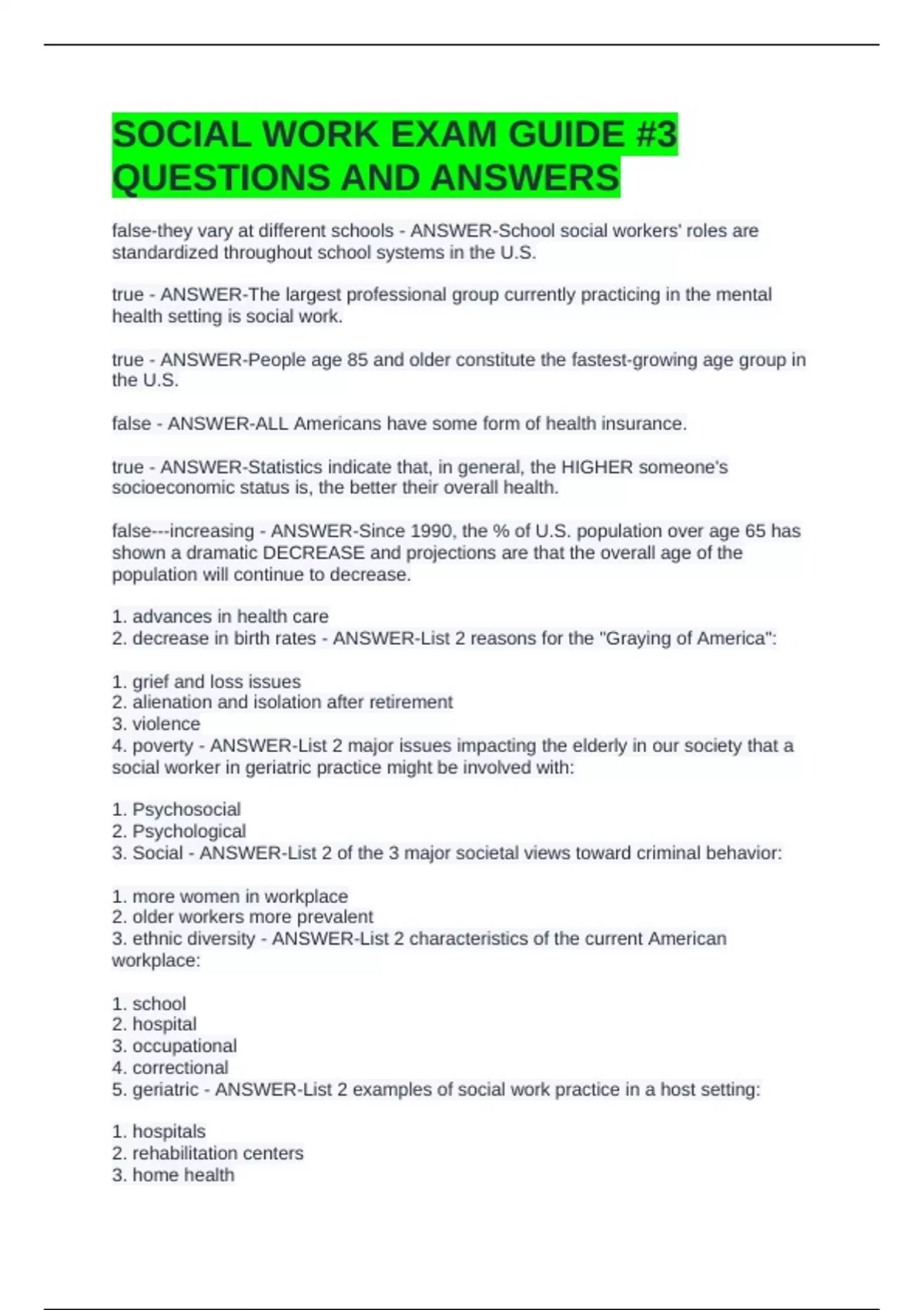 SOCIAL WORK EXAM GUIDE #3 QUESTIONS AND ANSWERS