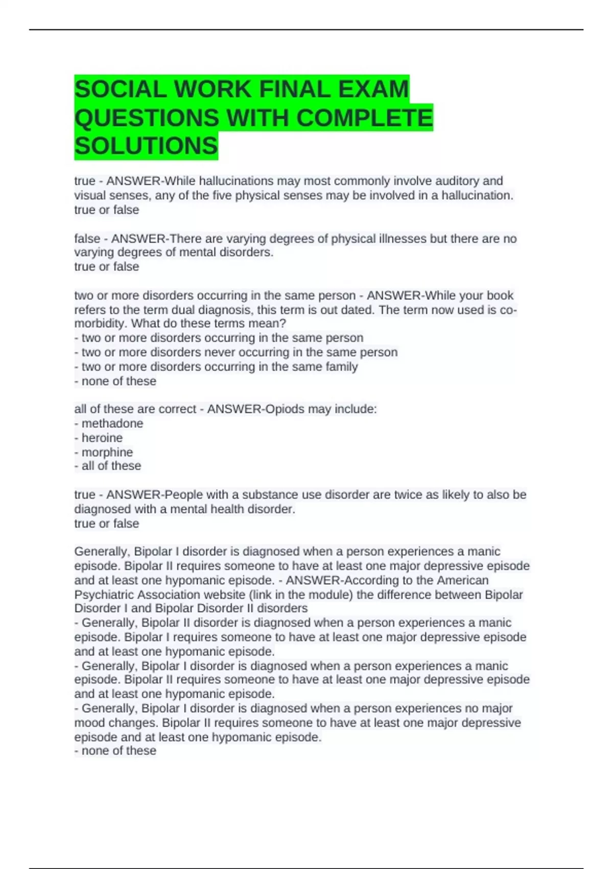 SOCIAL WORK FINAL EXAM QUESTIONS WITH COMPLETE SOLUTIONS