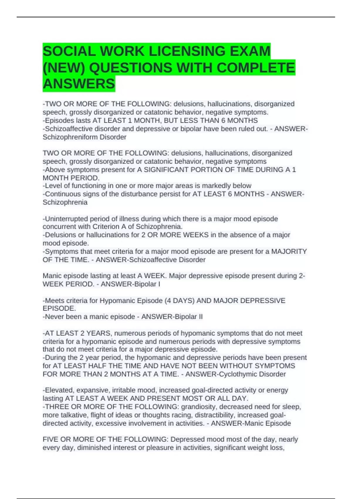 WEEK PERIOD. - ANSWER-Bipolar I