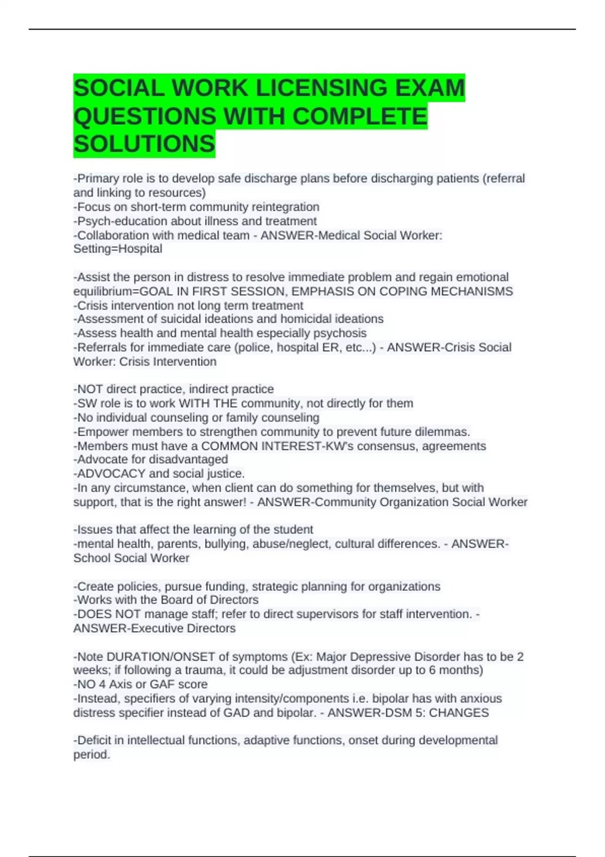 SOCIAL WORK LICENSING EXAM