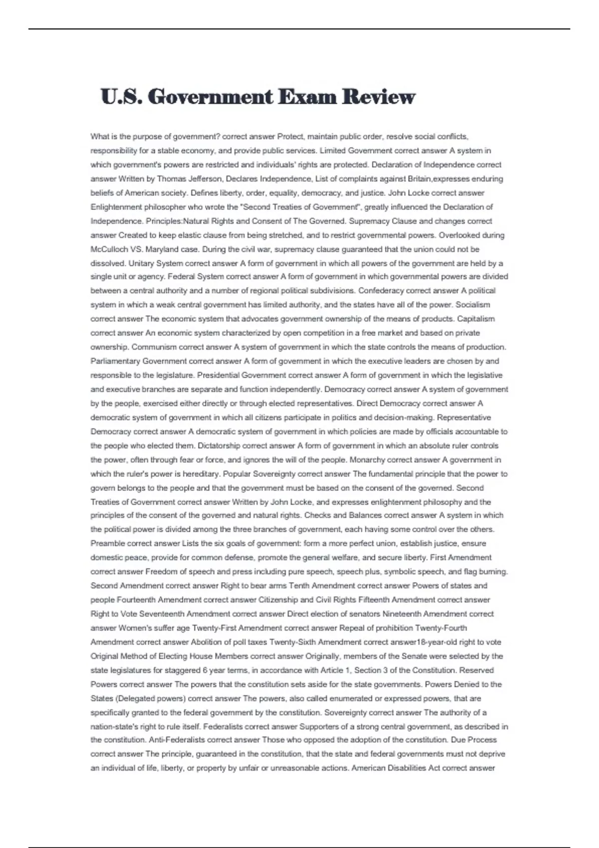 U.S. Government Exam Review