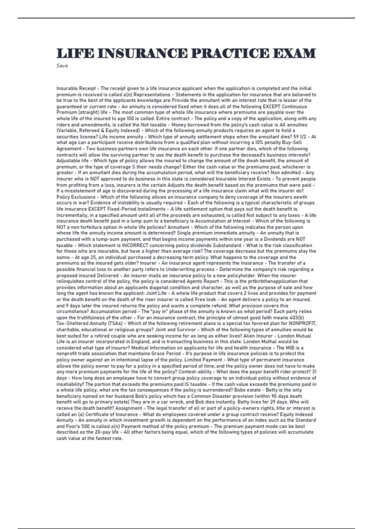 or the death benefit on the death of the riser insurer is called Free look - An agent delivers a policy to an insured,