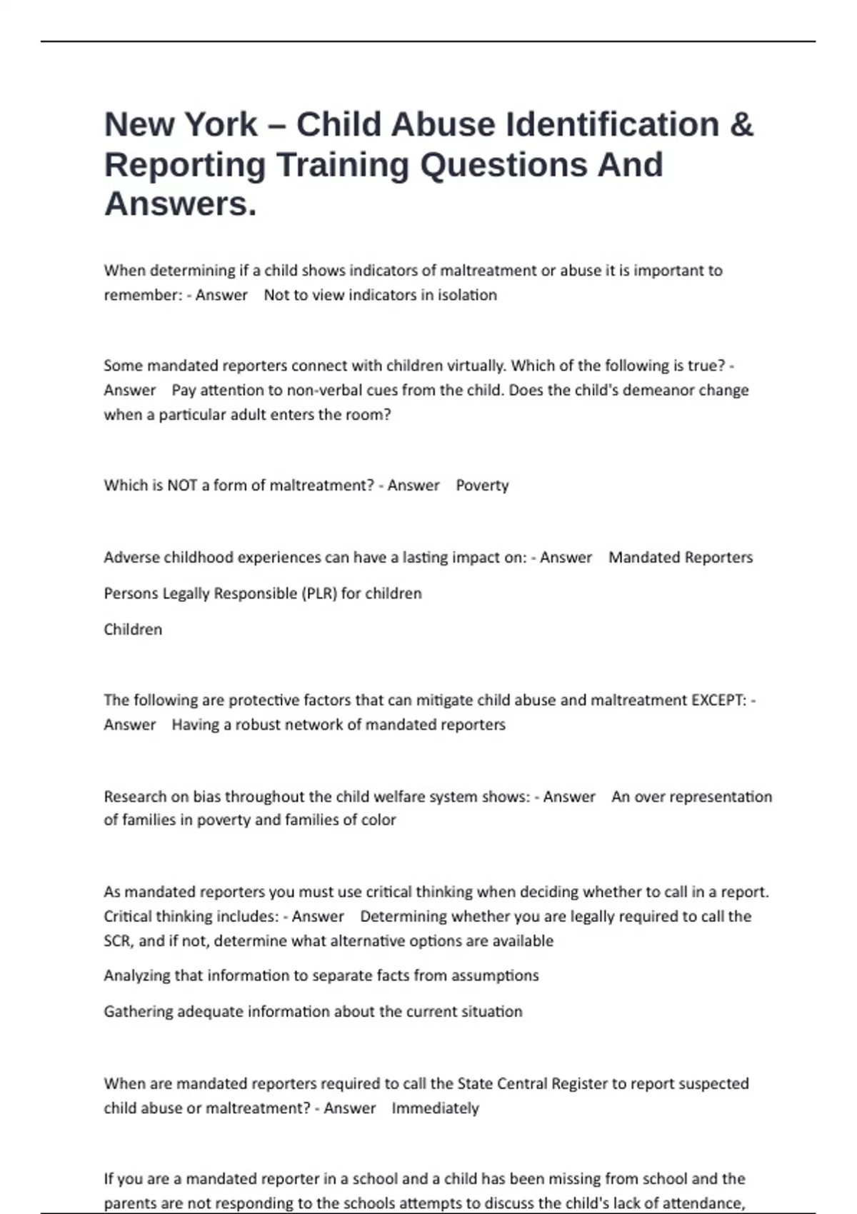 Adverse childhood experiences can have a lasting impact on: - Answer Mandated Reporters