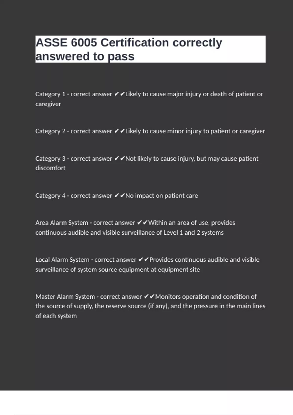 ASSE 6050 - correct answer ✔✔Medical Gas Systems Instructor