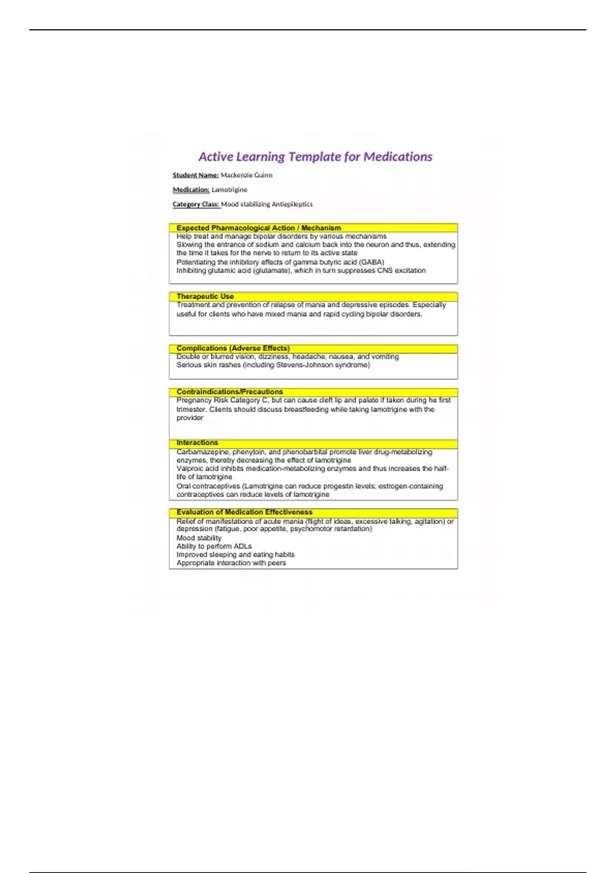 This is a comprehensive and detailed ATI medication template on; Lamotrigrine for Nurse 256. It's all Yours!!