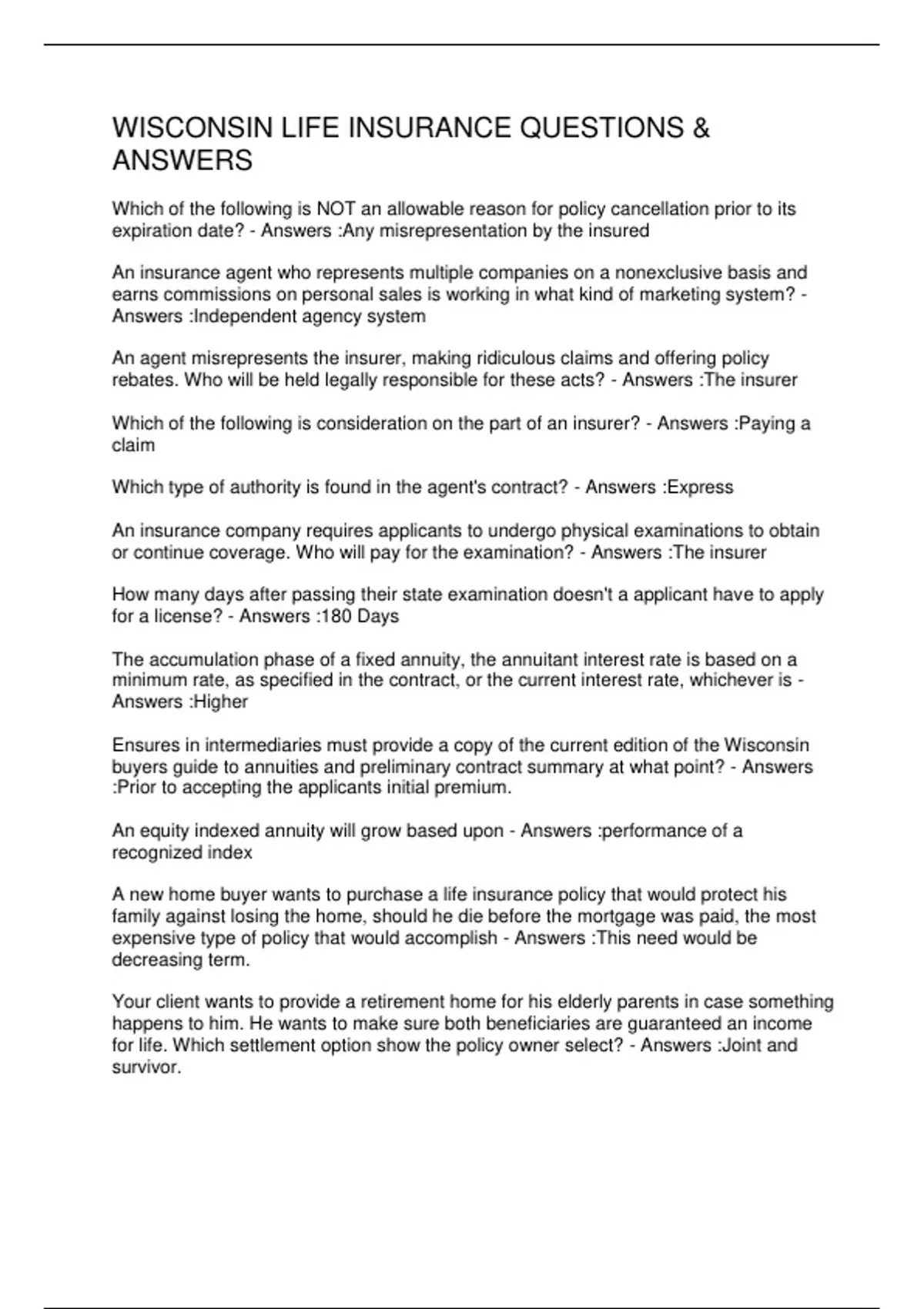 WISCONSIN LIFE INSURANCE QUESTIONS &
