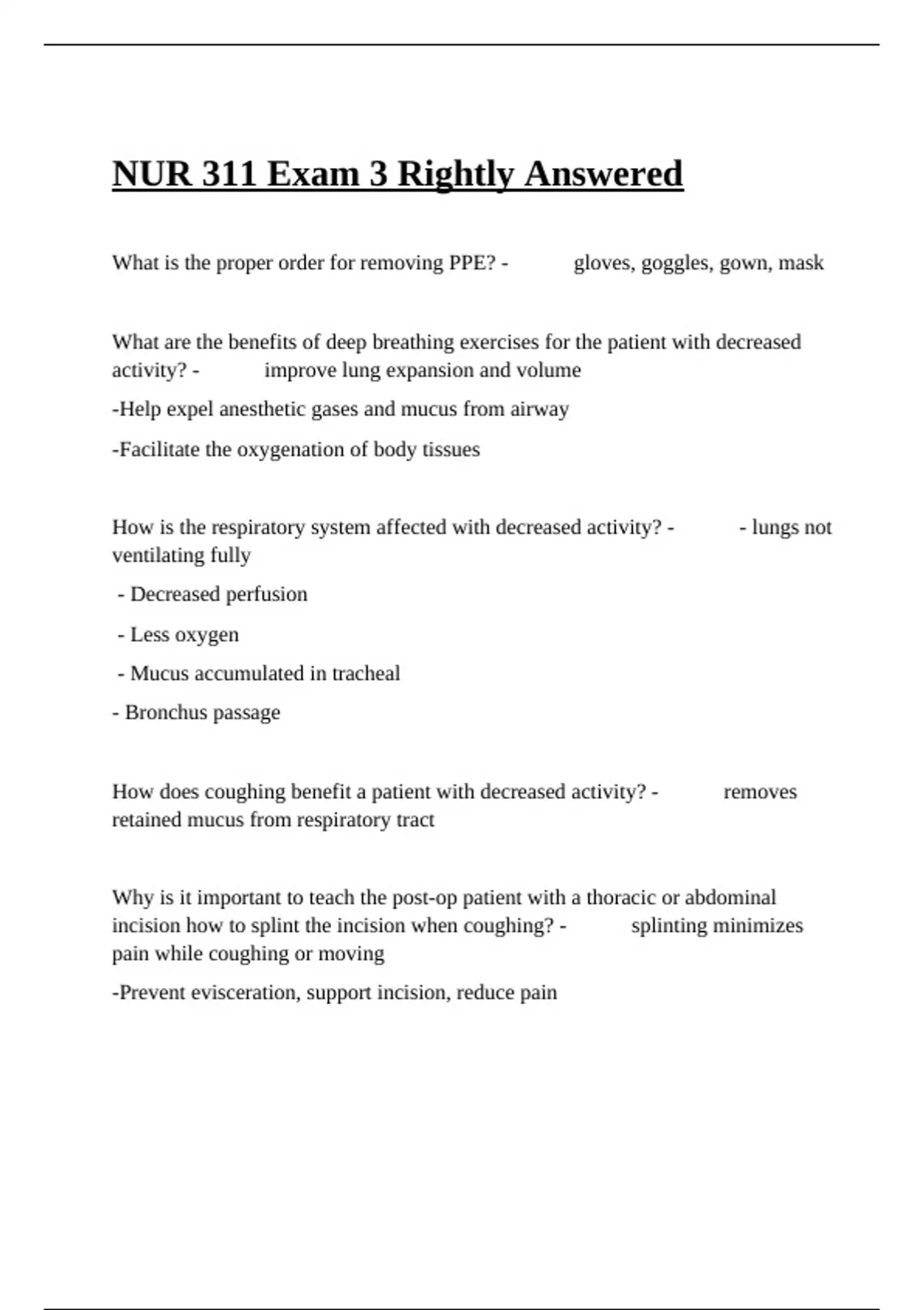 ,Respirations are often less effective in a patient with decreased activity. Alveoli do