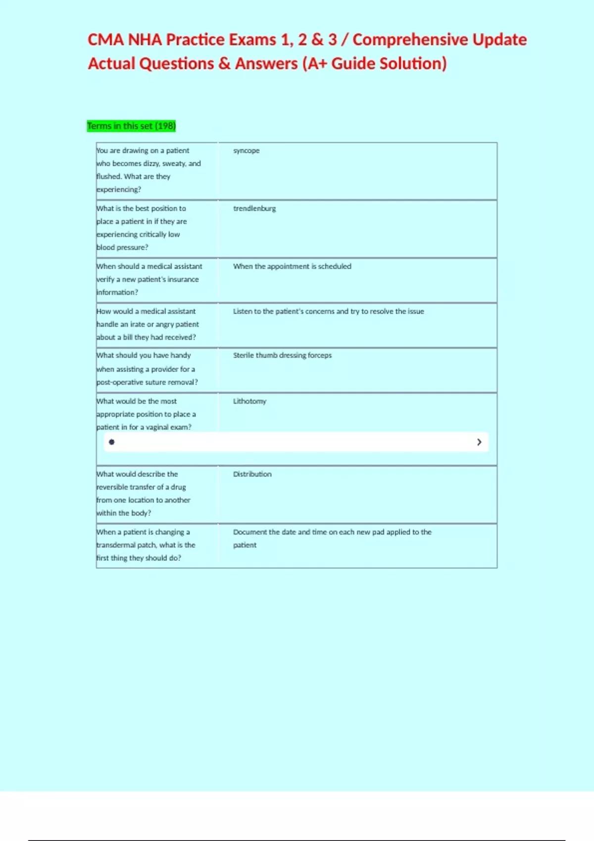CMA NHA Practice Exams 1, 2 & 3 / Comprehensive Update Actual Questions & Answers (A+ Guide Solution)