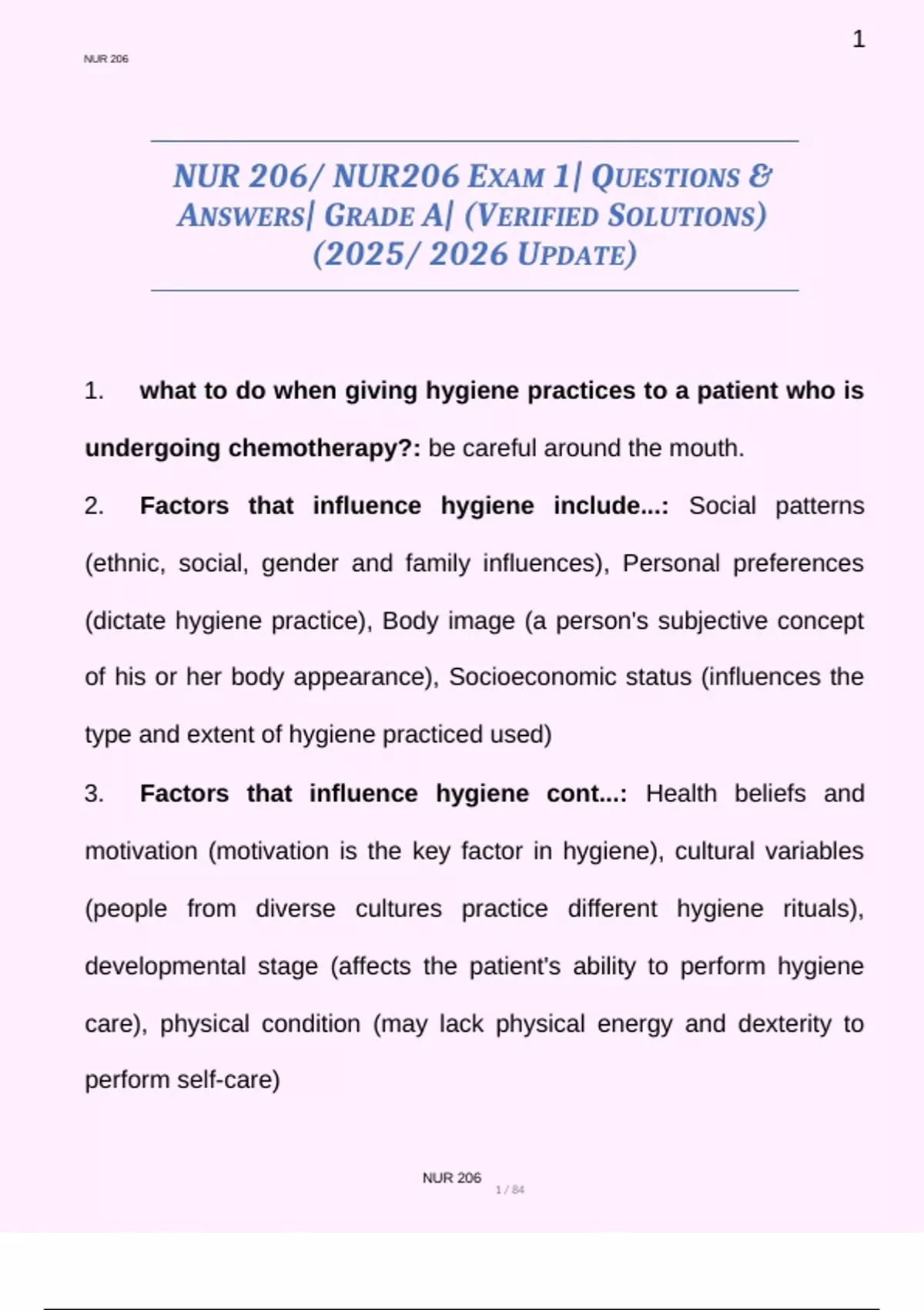 NUR 206/ NUR206 E XAM 1| QUESTIONS &