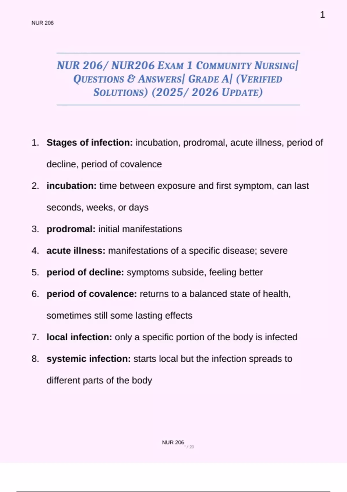 NUR 206/ NUR206 EXAM 1 COMMUNITY NURSING|