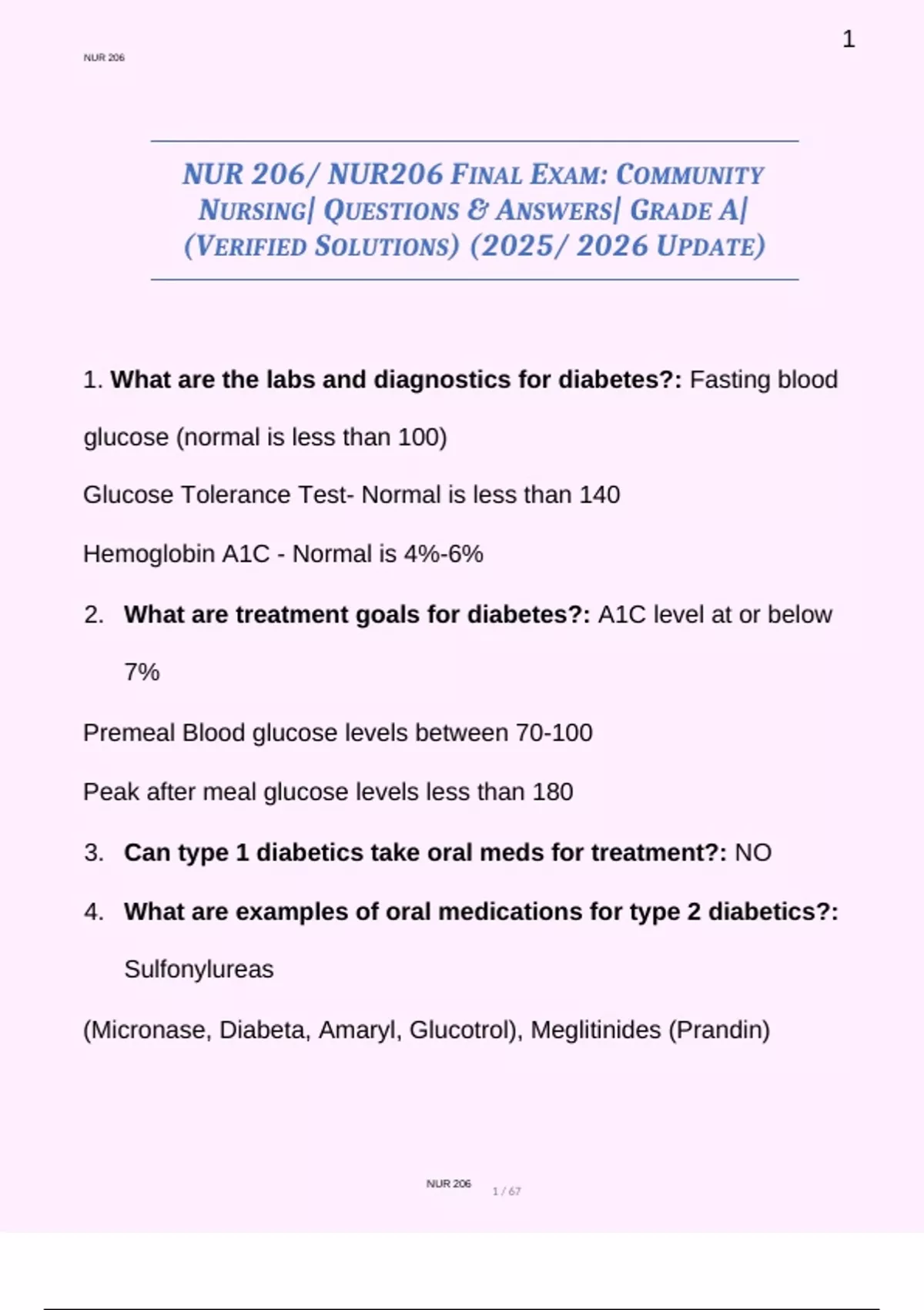 NUR 206/ NUR206 FINAL EXAM: COMMUNITY NURSING| QUESTIONS & ANSWERS| GRADE A| (VERIFIED SOLUTIONS) (2025/ 2026 UPDATE)