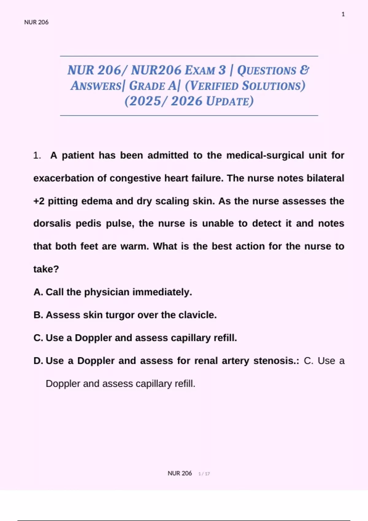 NUR 206/ NUR206 EXAM 3 | QUESTIONS &