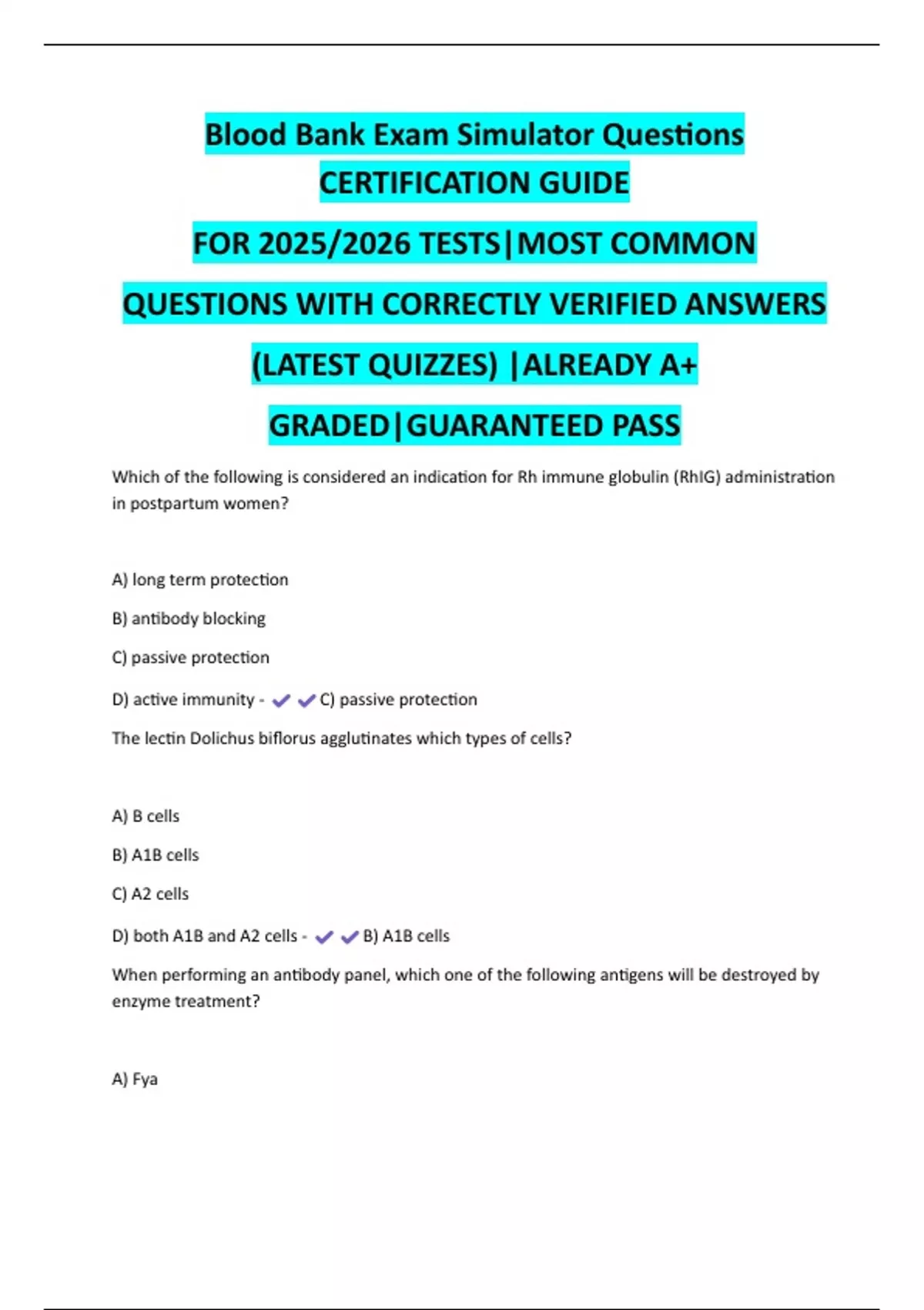 Blood Bank Exam Simulator 2025 Fast Track Review | Updated Quizzes with 100% Correct Answers