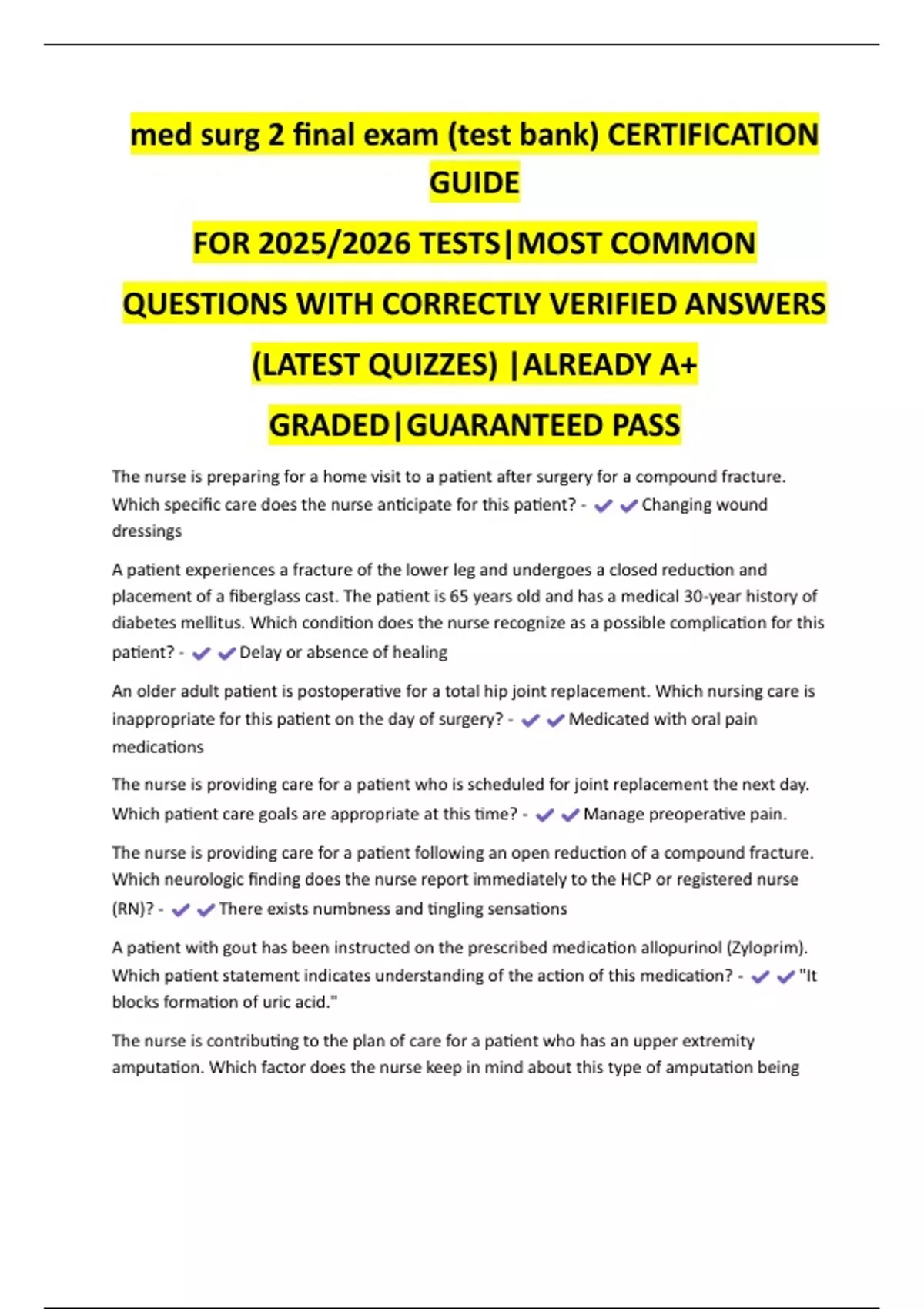 QUESTIONS WITH CORRECTLY VERIFIED ANSWERS