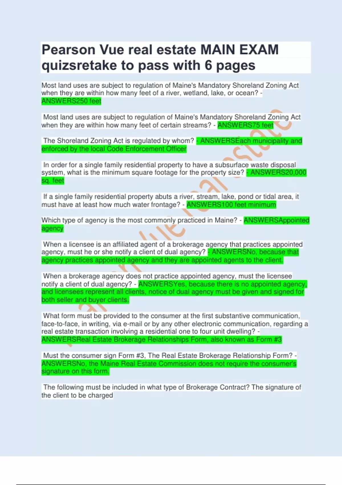 ANSWERSNo, the Maine Real Estate Commission does not require the consumer's