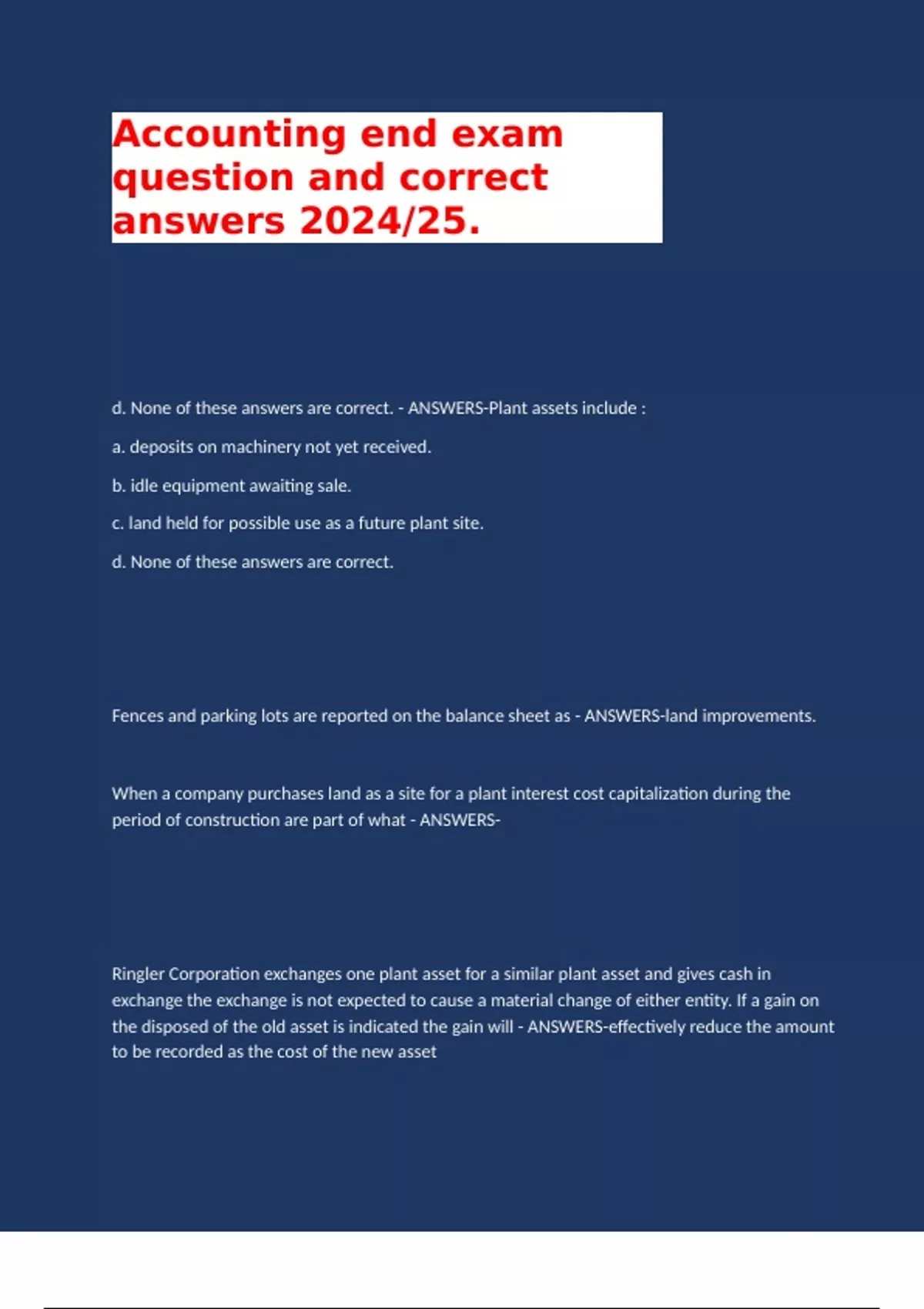 d. None of these answers are correct. - ANSWERS-Plant assets include :