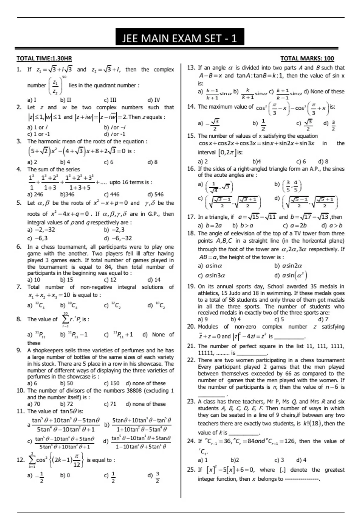 c) 1 or -1 d) i or -1 15. The number of values of x satisfying the equation