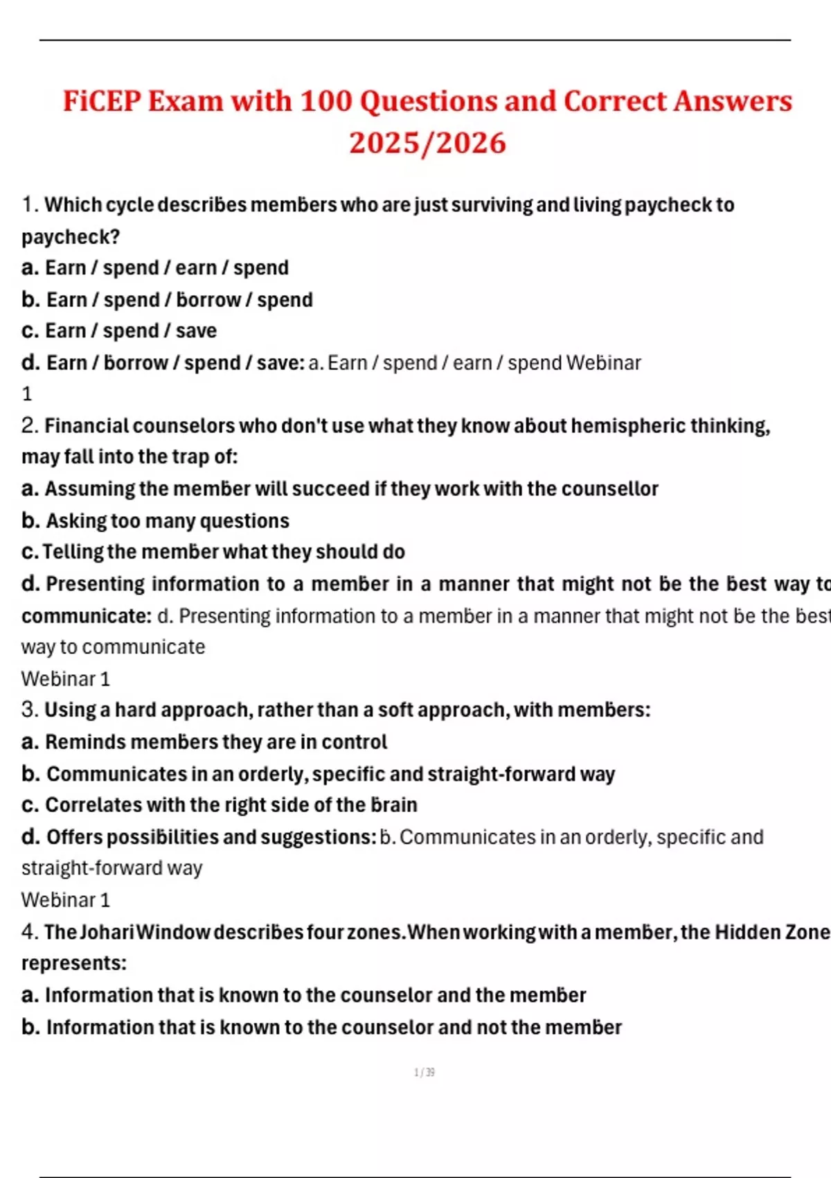 d. Earn / ḃorrow / spend / save: a. Earn / spend / earn / spend Weḃinar