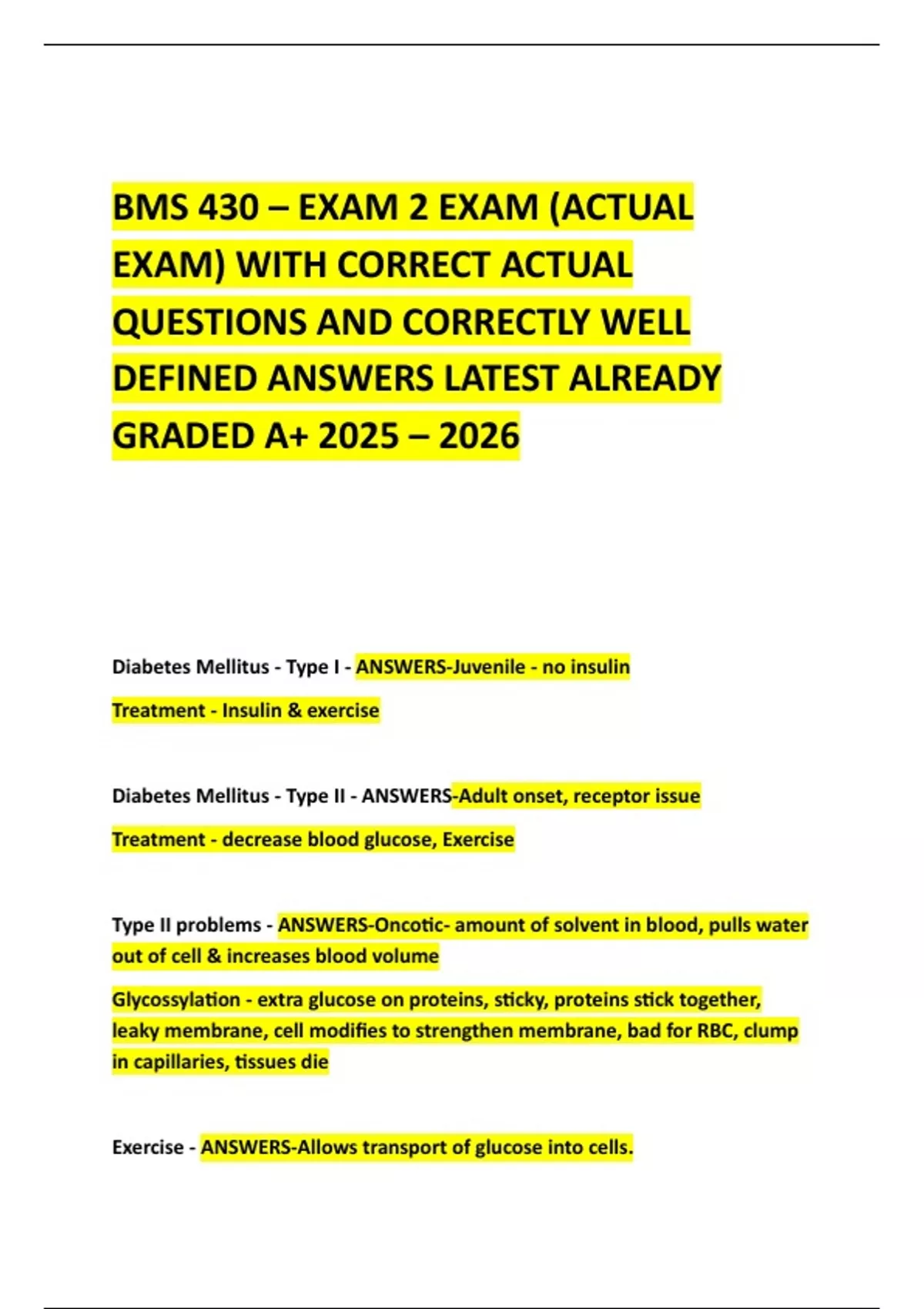 Exercise - ANSWERS-Allows transport of glucose into cells.