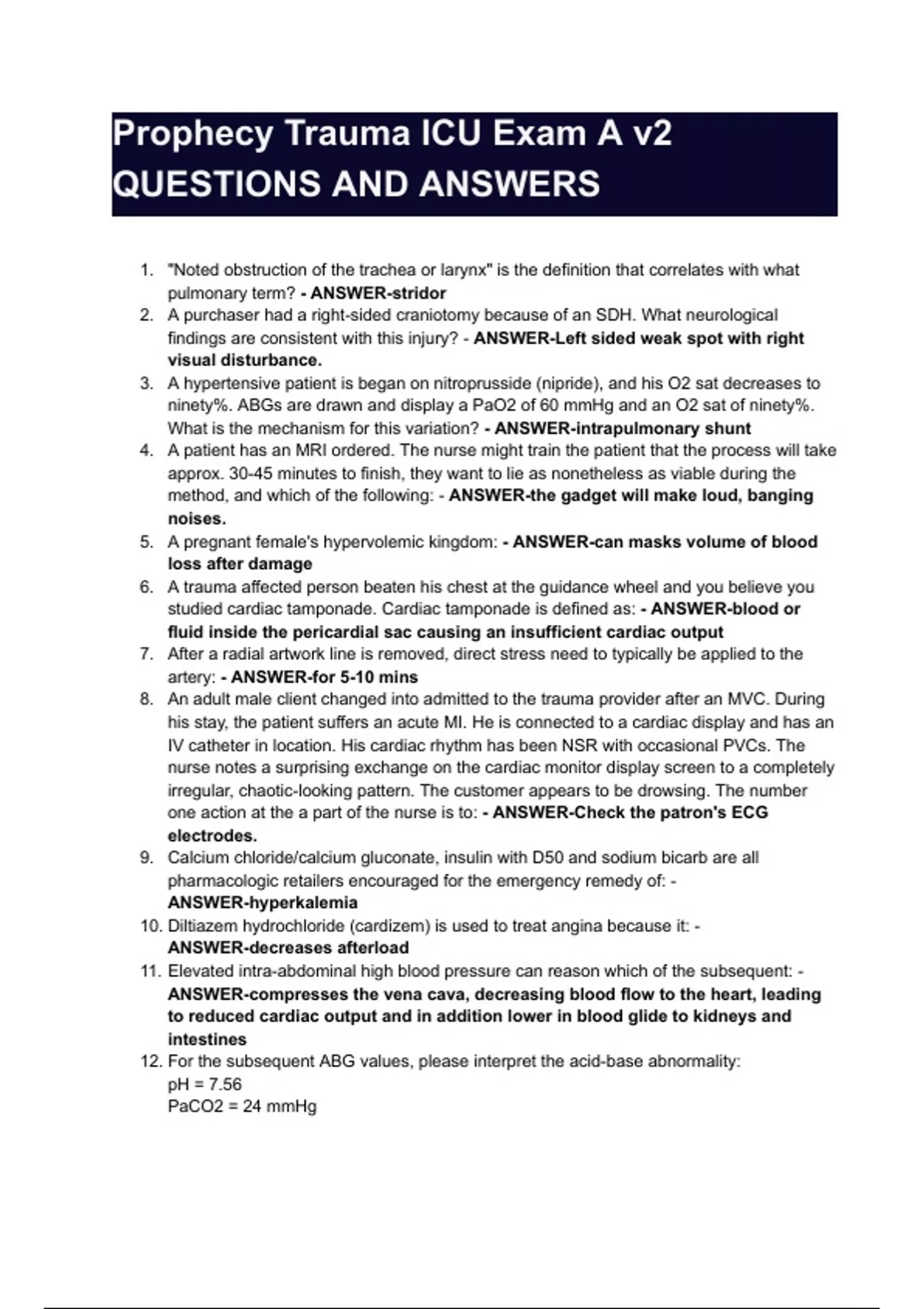 Prophecy Trauma ICU Exam A v2 QUESTIONS AND ANSWERS 100% VERIFIED FOR A GUARANTEED PASS