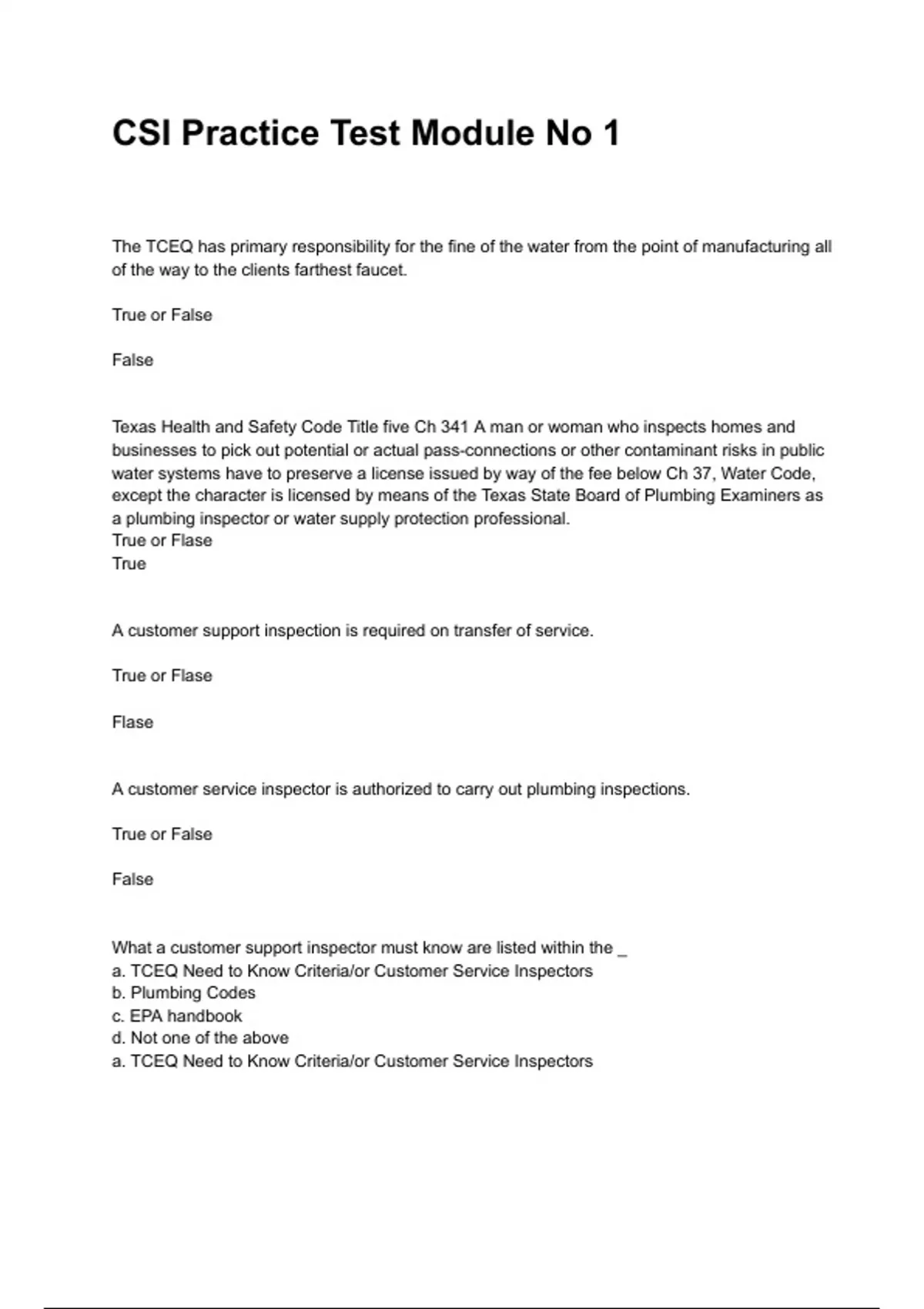 a. TCEQ Need to Know Criteria/or Customer Service Inspectors