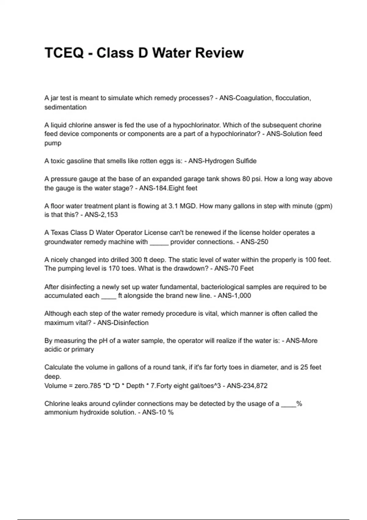 A liquid chlorine answer is fed the use of a hypochlorinator. Which of the subsequent chorine