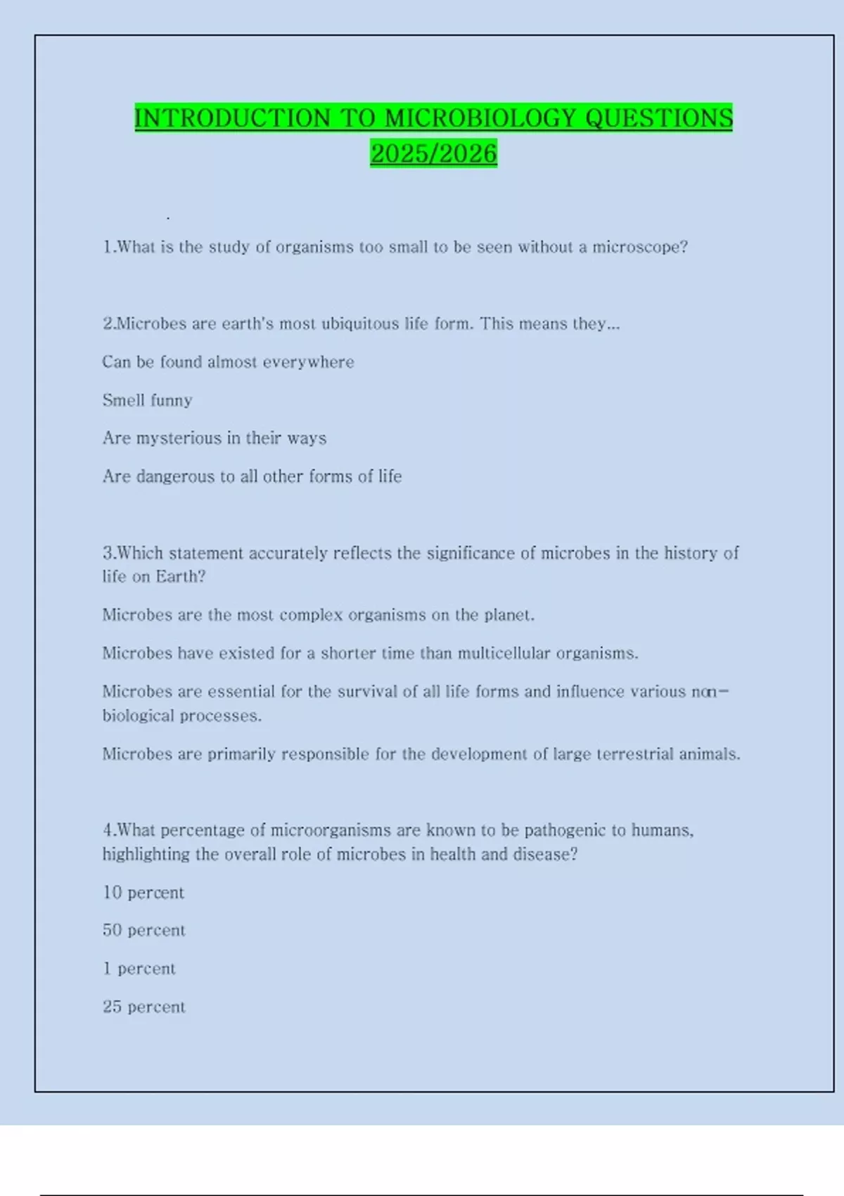 INTRODUCTION TO MICROBIOLOGY QUESTIONS 2025/2026