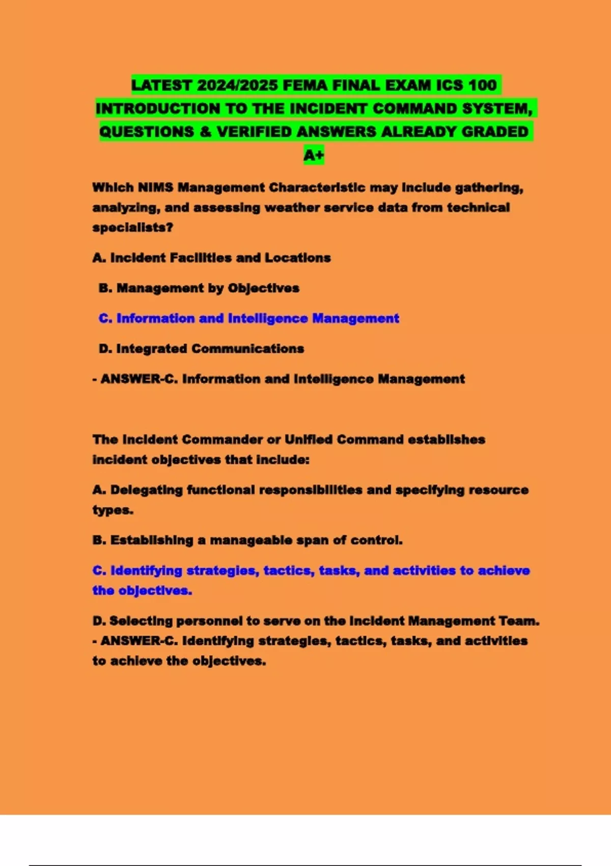 - ANSWER-D. Incident Objectives